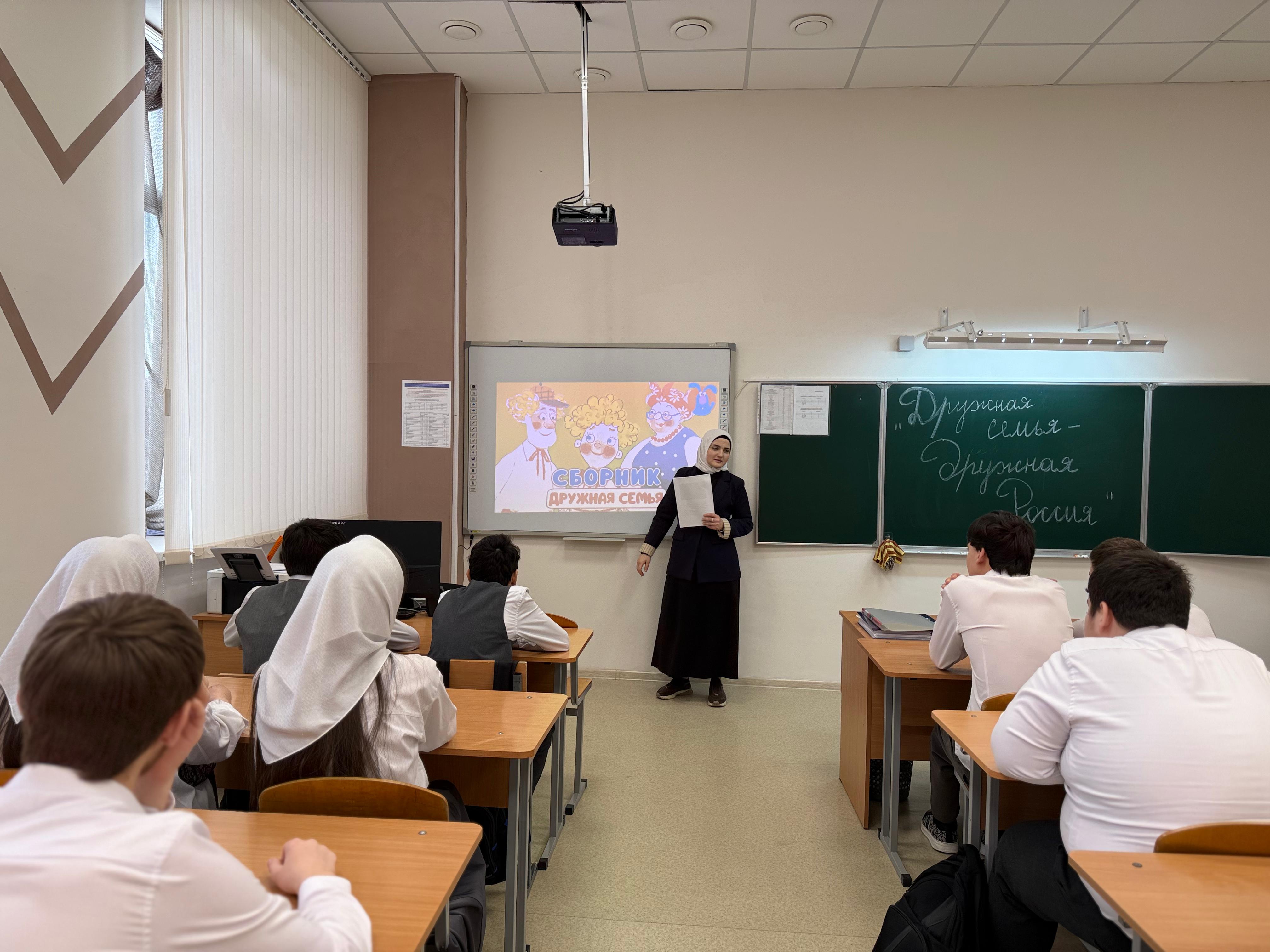В МБОУ "СОШ с.Беркат-Юрт" проведен "Дружная семья - дружная Россия" 9г класс