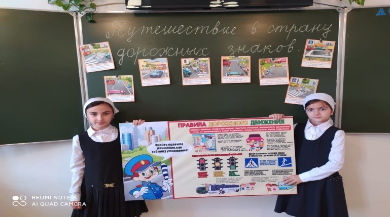 С целью предупреждения детского дорожно-транспортного травматизма.15 ноября классный руководитель Мусханова М.А-Г провела мероприятие «Путешествие в страну дорожных знаков». В ходе мероприятия с учащиеся повторили правила перехода улицы, значение знаков для водителей и пешеходов. Также проанализированы ситуации на дорогах, которые ведут к детскому травматизму