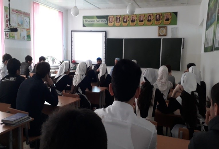 Далее выступил Абакаев И.К своей беседе он рассказал о мерах наказания за те или иные преступления, совершенные лицами подросткового возраста, призвал к тому, чтобы дети не оступились, не обманулись, соблюдали закон, который не противоречит учениям Корана. Также выступила социальный педагог Джамалуева А.У которая познакомила учащихся с законом, запрещающим употребление наркотиков и психоактивных веществ. В мероприятие приняли 47 учащихся. Проведено 1 мероприятие.