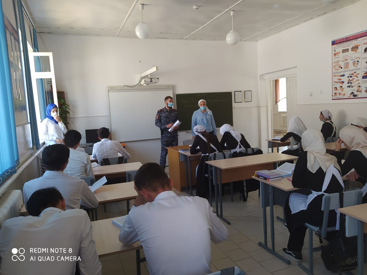 10.09.2020С целью профилактики преступности в молодежной среде, а также других правонарушений и преступлений, совершаемых несовершеннолетними, 10 сентября в школе была организована встреча с инспектором ПДН с учащимися 10-х классов. Общение с учащимися проходило в форме круглого стола. В беседе освещались вопросы об административной и уголовной ответственности несовершеннолетних за совершение преступлений и правонарушений. Подросткам было разъяснено, с каких лет наступает уголовная ответственность и какие наказания применяются за совершение преступлений. Также инспектор затронул вопросы поведения учащихся в школе и общественных местах, уважительного и корректного отношения школьников к учителям, взрослым и сверстникам. Беседа основывалась на конкретных примерах и фактах из профессиональной деятельности инспекторов.