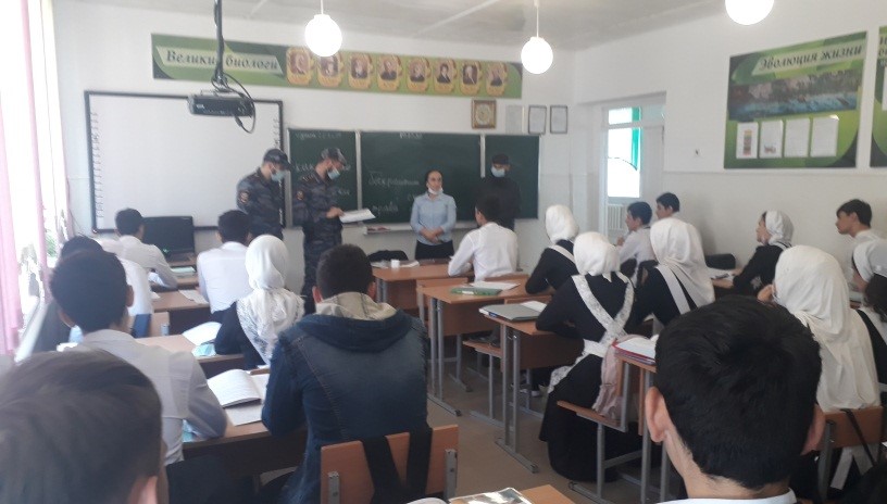 14.10.20 совместно со старшим инспектором ПДН ОМВД России по Грозненскому району лейтенантом полиции Исраиловым И.Ш., совместно с УУП ОМВД России по Грозненскому району майором полиции Абуевым И.А., проведены профилактическая работа с несовершеннолетними обучающимися,