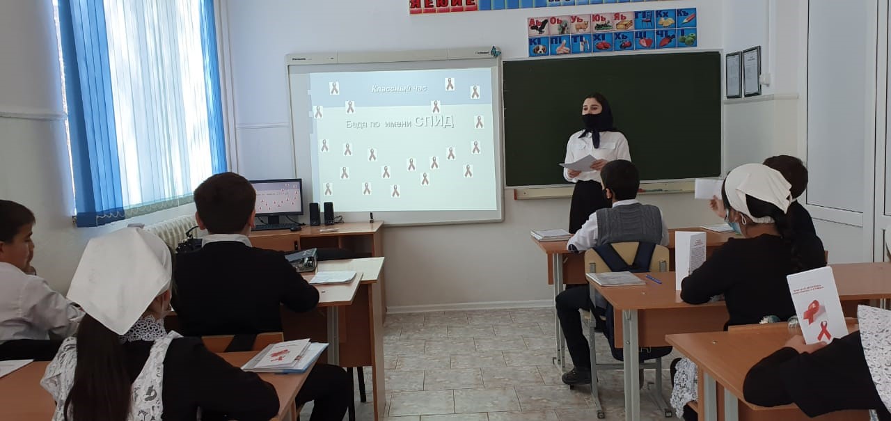 30.11.20 года медицинским работником школы Муцуевой Т.Ч., совместно с социальным педагогом школы Джамалуевой А.У проведены беседы детям рассказали о том, что нужно знать о ВИЧ –инфекции и СПИДе, о том, как не заразиться этой болезнью. Врачом были озвучены и статистические данные заболеваемости СПИДом. В ходе встречи говорилось о том, что сегодня ВИЧ-инфекция уже не является смертельным заболеванием, так как существует антиретровирусная терапия. Было подчёркнуто, что люди, ведущие здоровый образ жизни и ответственные за свое поведение и здоровье, не заболевают СПИДом, что каждый молодой человек должен осознать необходимость активной заботы о своем здоровье и о здоровье других. Также врач затронул особенно важные вопросы, касающиеся развития юношеского организма, последствий пагубного отношения к своему здоровью. Старшеклассники получили исчерпывающие ответы на интересующие их вопросы. В заключение ребята получили памятки-листовки «Подросткам о СПИДе».