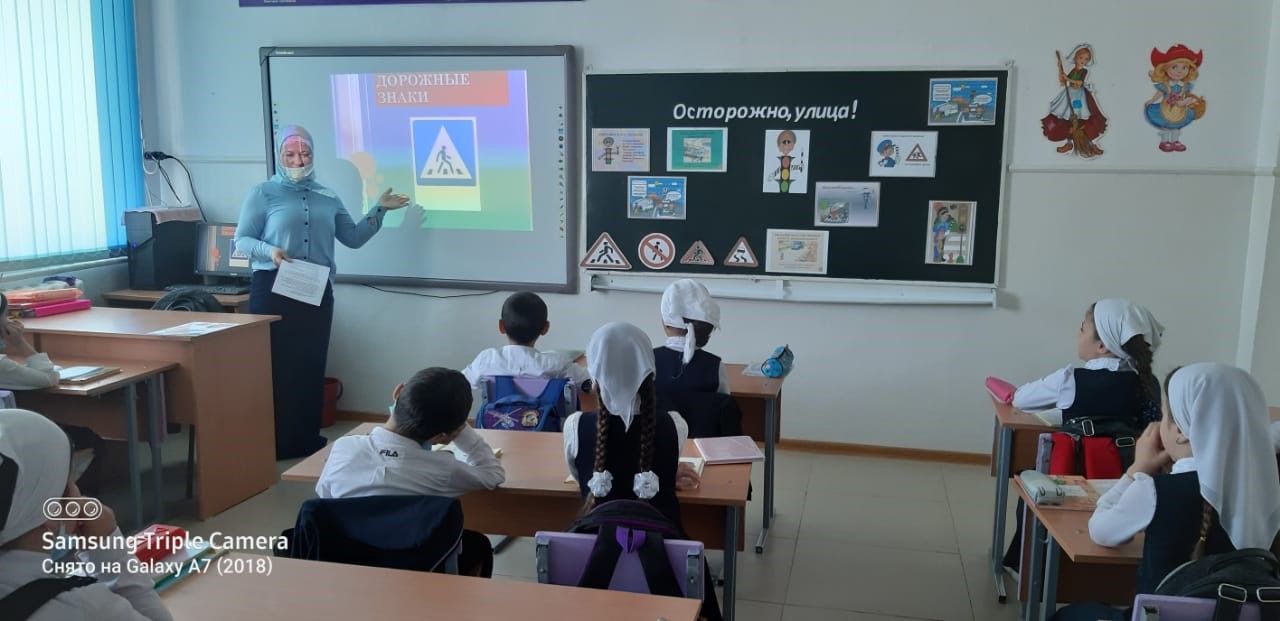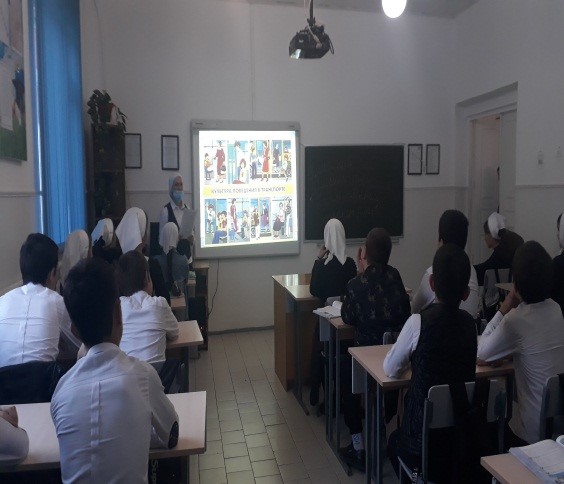 С целью профилактики детского дорожно-транспортного травматизма. 7.12.20 классный руководитель Болтаевой П.А 7в классе провела классный час на тему: «Правила поведения в общественном транспорт. В ходе наглядно показала и рассказала о том, что может случиться, если попасть в «дорожные ловушки» и не соблюдать правила. Провели викторину «Дорожный знак» где рассказала учащимся о том, что пешеходу следует всегда соблюдать одно из главных правил - запрещается выходить на проезжую часть дороги, не убедившись в личной безопасности. Также нельзя выходить на дорогу из-за припаркованного транспорта, перебегать проезжую часть перед близко движущимся автомобилем.