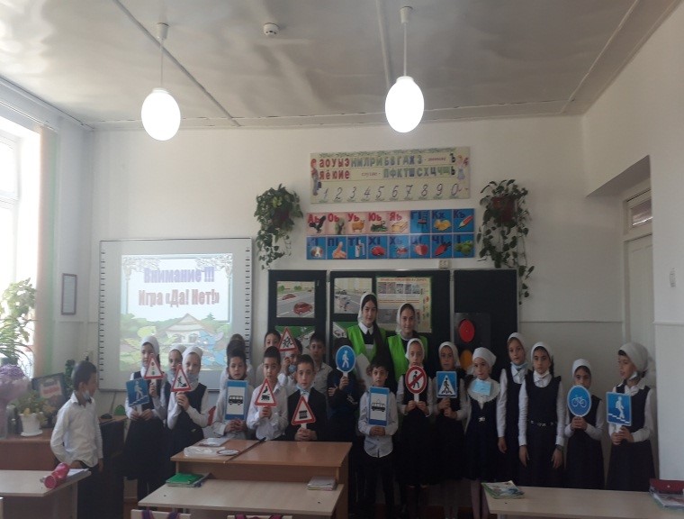 4 декабря классным руководителем Хизриевой С.А. проведена обучающая игра «Красный, желтый, зелёный» для учеников 1«е» класса. Где она рассказала детям об опасностях, подстерегающих на дорогах, необходимости соблюдения правил дорожного движения. Дети в игровой форме повторяли правила дорожного движения, учились применять знания.