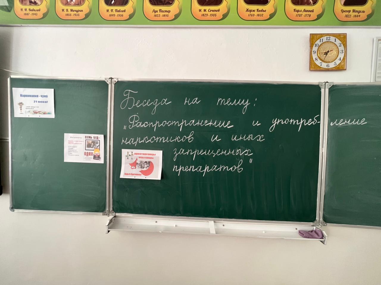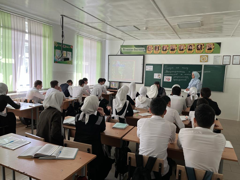 11.04.2022 классным руководителем Джамалуевой Амнат проведена беседа в 9 «б» классе на тему: «Распространение и употребление наркотиков и иных запрещённых препаратов»