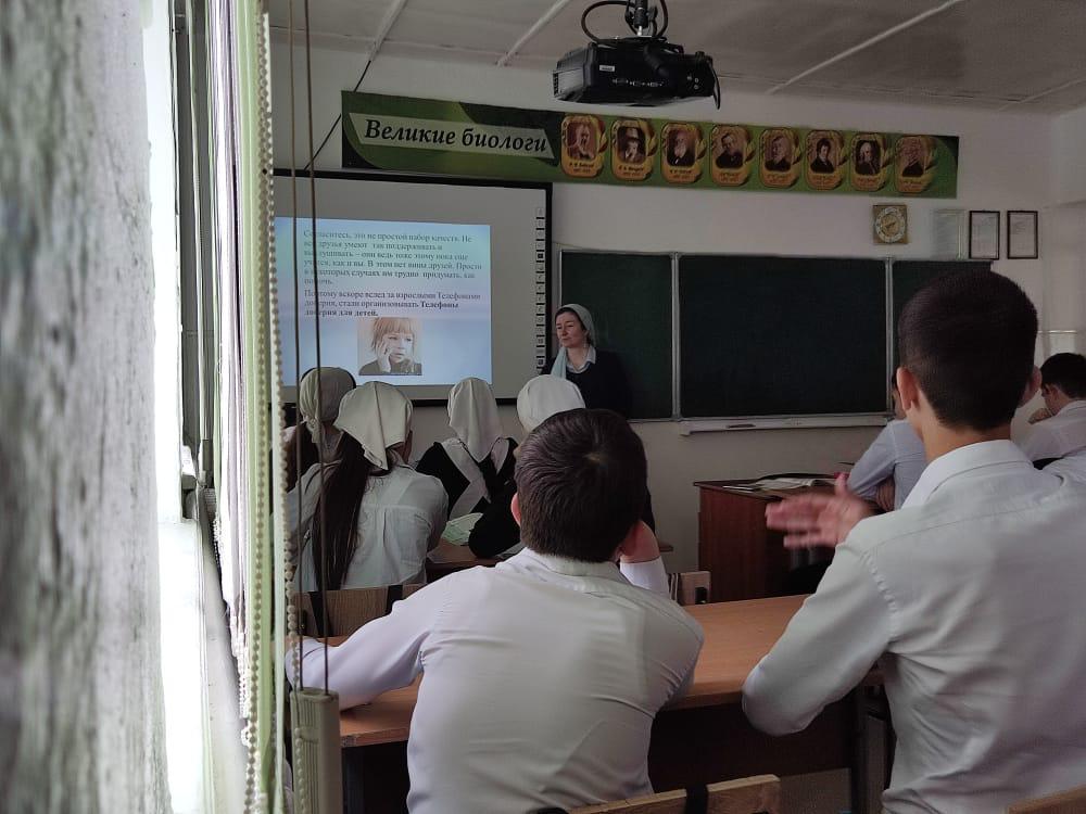22.04.2022г. В рамках проведения Недели психологии классный руководитель Тимиргириева Л.Х. провела классный час «Детский телефон доверия» среди обучающихся 8 «б» класса.