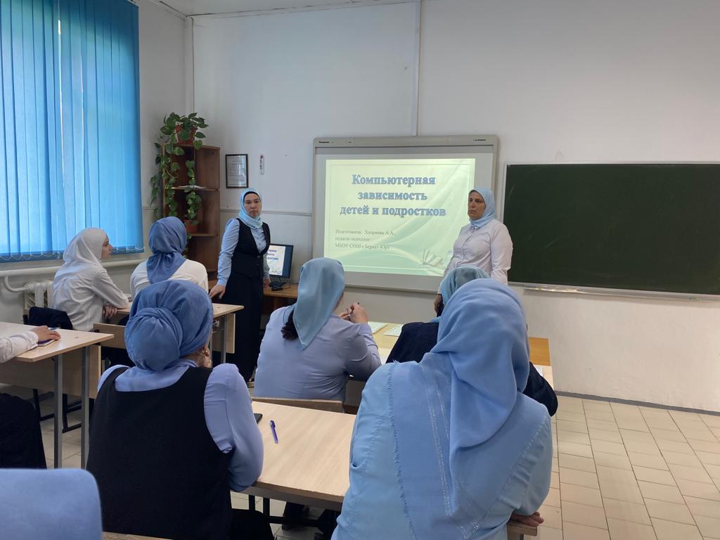 05.05.202205.05.2022г. педагог-психолог Хизриева А.А. и социальный педагог Джамалуева А.У. провели с классными руководителями беседу на тему: «Компьютерная зависимость подростков». Беседа была проведена с целью формирования представления педагогов о направлениях в профилактике компьютерной зависимости у подростков. В рамках беседы была затронута проблема безопасности при использовании детьми сети Интернет. Хизриева А.А.сообщила о потенциальных рисках при использовании Интернета, путях защиты от сетевых угроз, о проблеме интернет-зависимости, о правилах поведения в социальных сетях. Также она рассказала, что Интернет вызывает привыкание, сравнимое с наркоманией, причем в отличие от других форм болезненных зависимостей, интернет – аддикции подвержены, в первую очередь, дети.