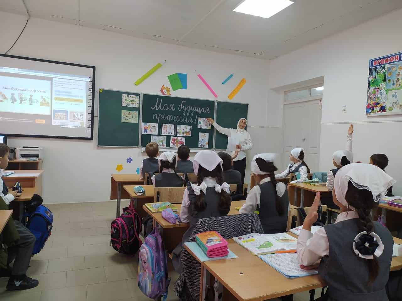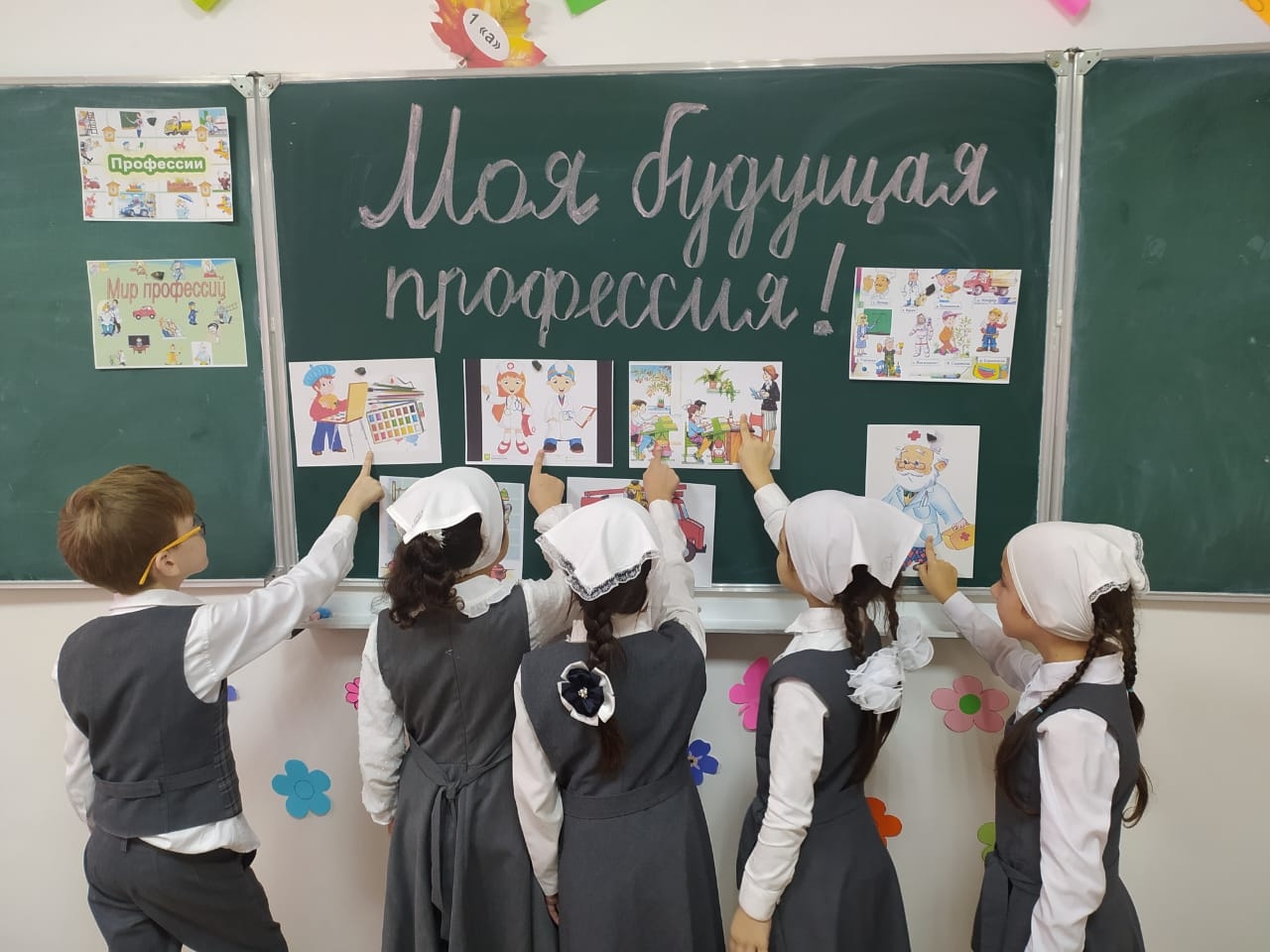 В МБОУ СОШ с.Беркат-Юрт классный руководитель 1" А" класса Хизриева Петимат Алиевна провела урок на тему "Моя будущая профессия".