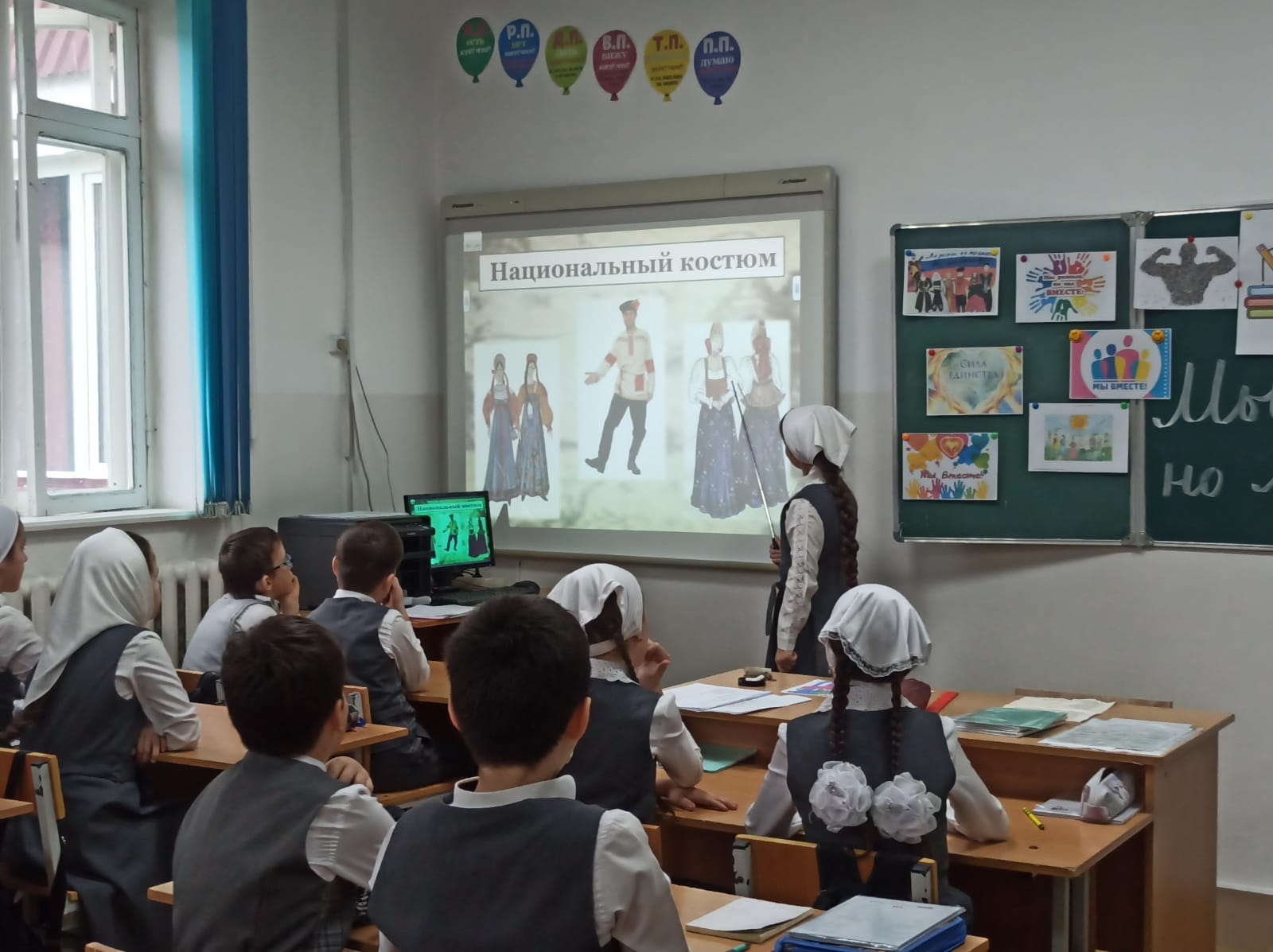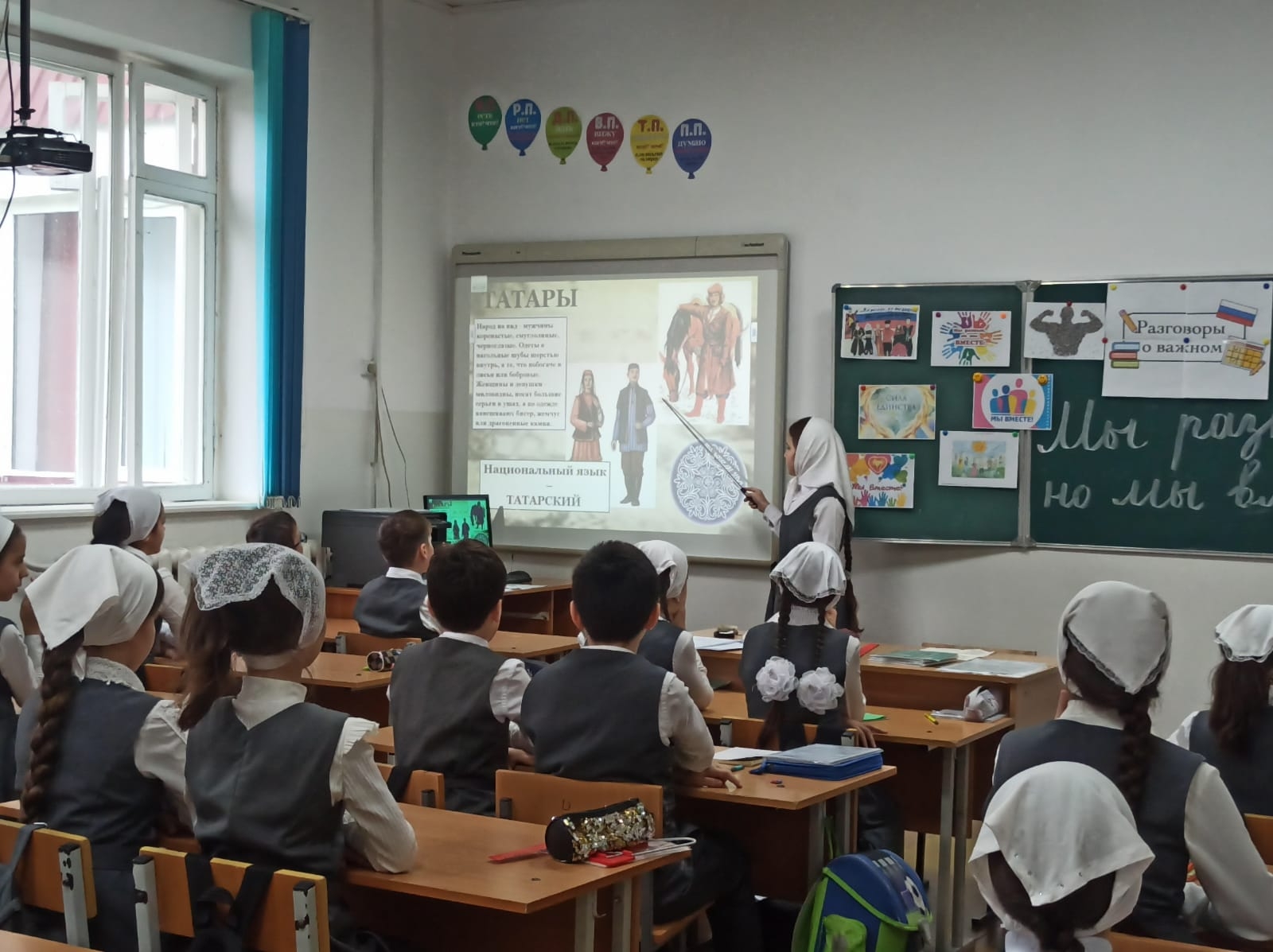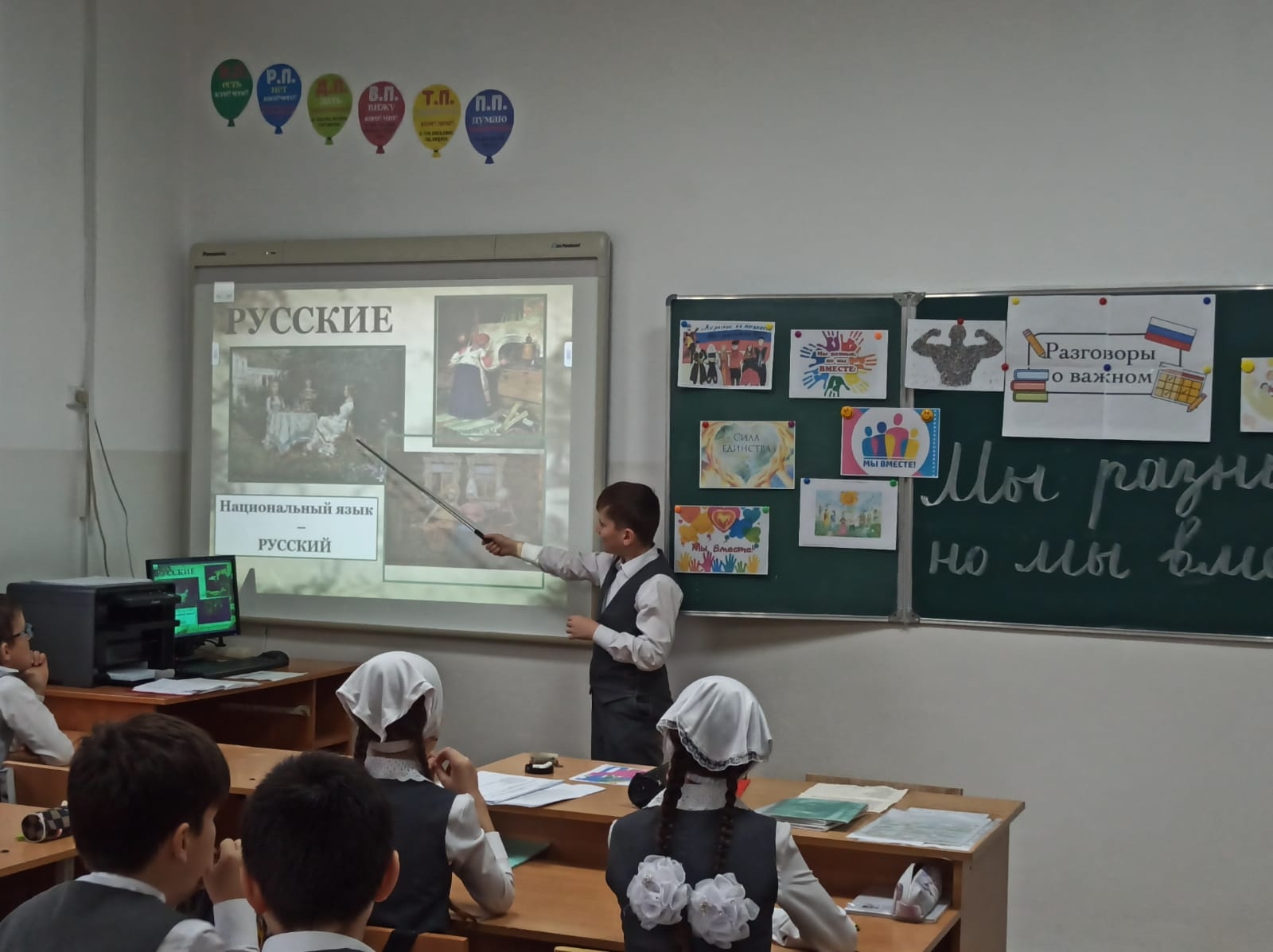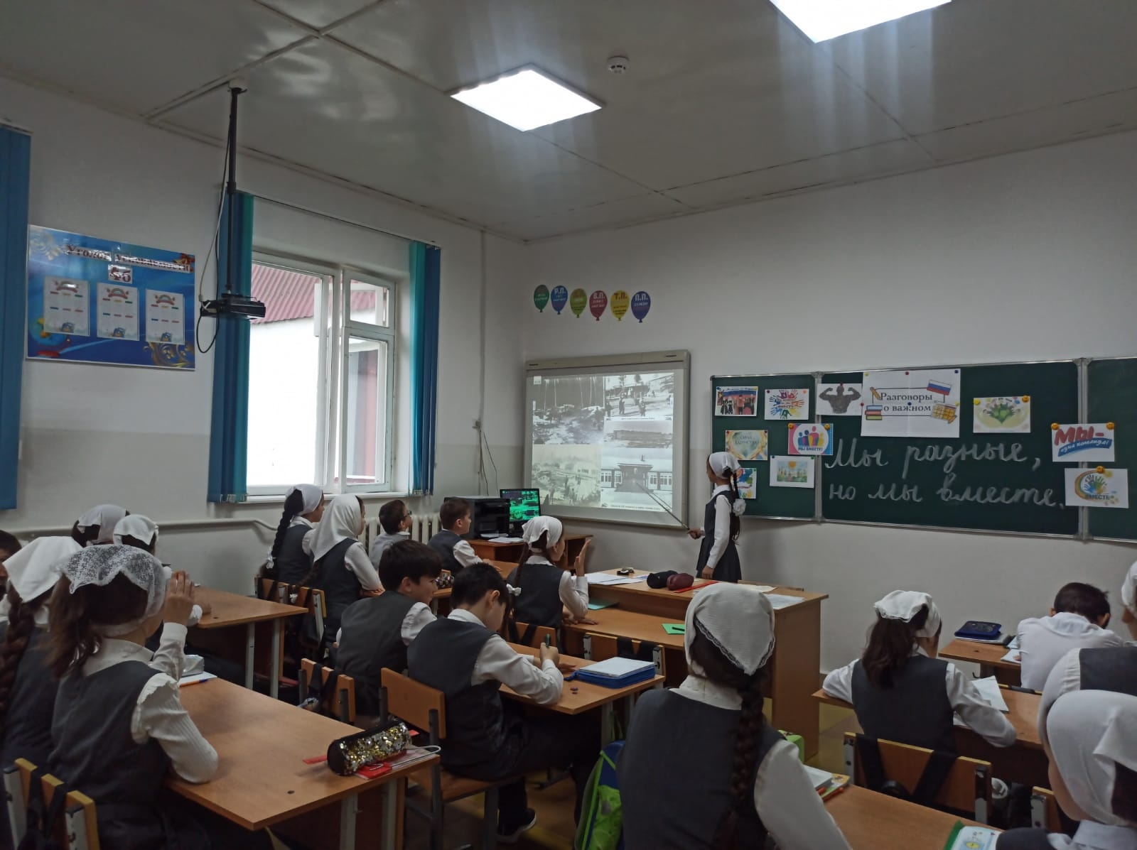 В МБОУ СОШ с.Беркат-Юрт классный руководитель " 4б" класса Елбазова Зарема Ширваниевна провела урок Разговор о важном на тему "Мы разные, но мы вместе"