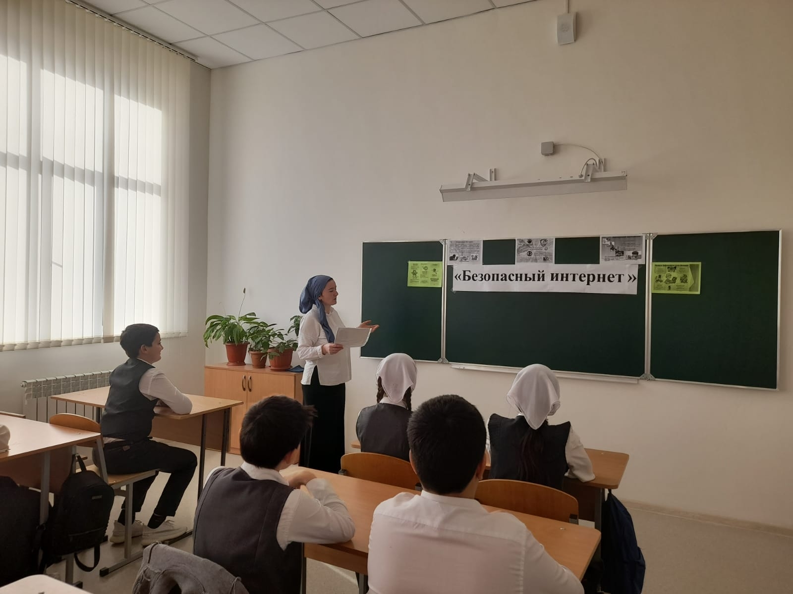В МБОУ СОШ с.Беркат-Юрт классный руководитель "5Б" класса Абубакарова Зара Туркоевна провела классный час на тему "Безопасный интернет"