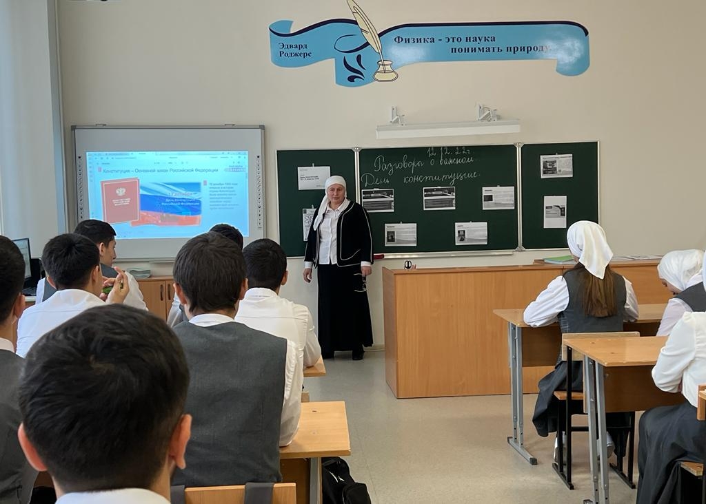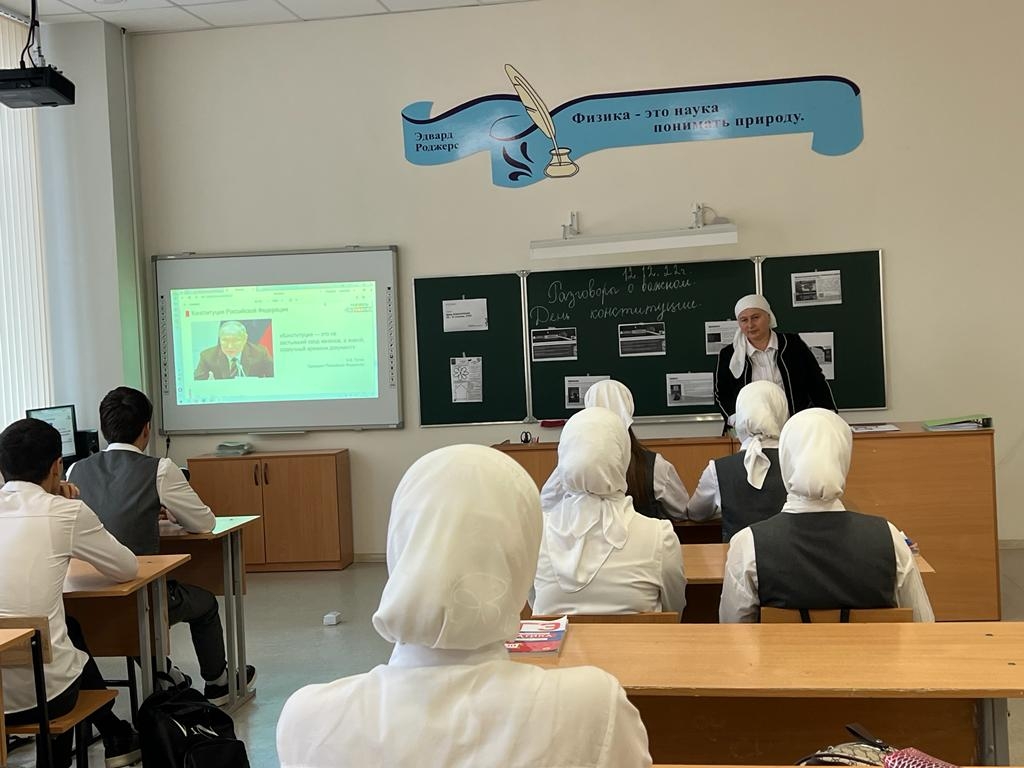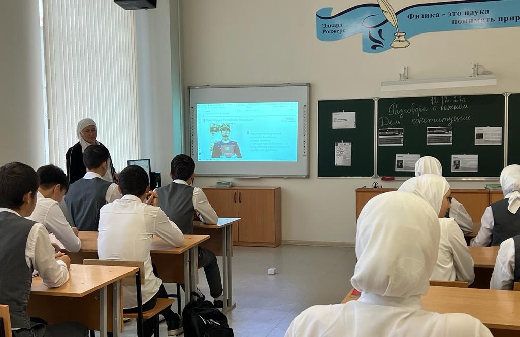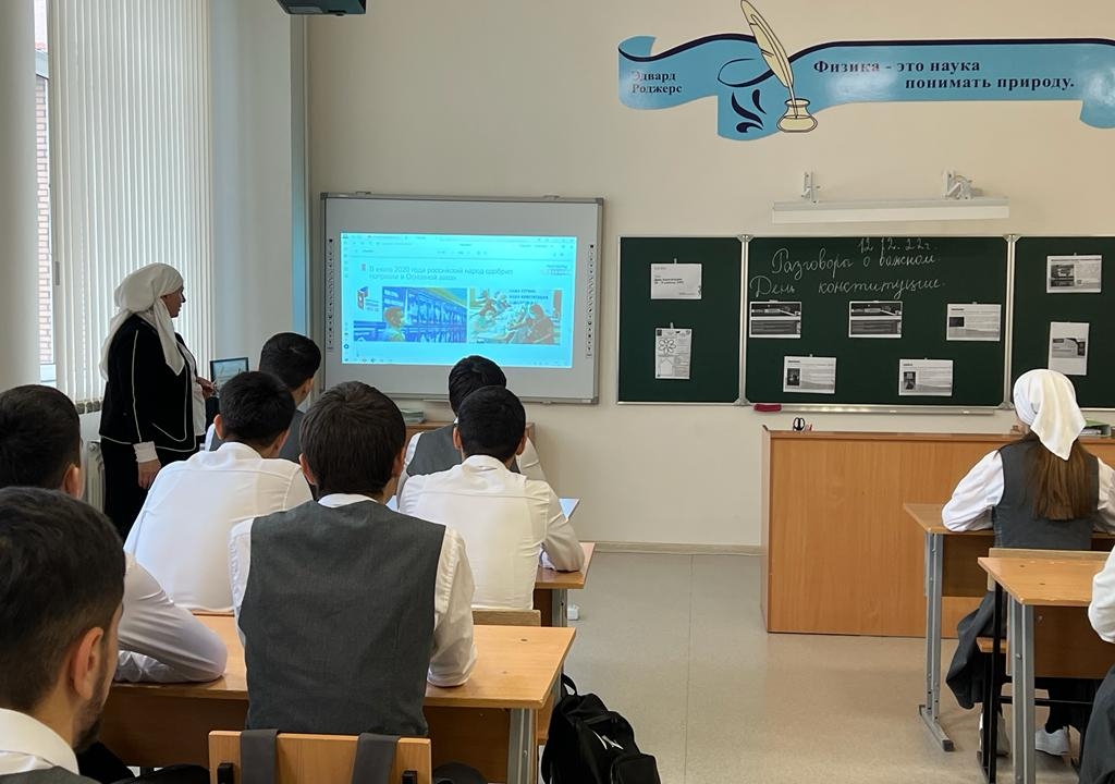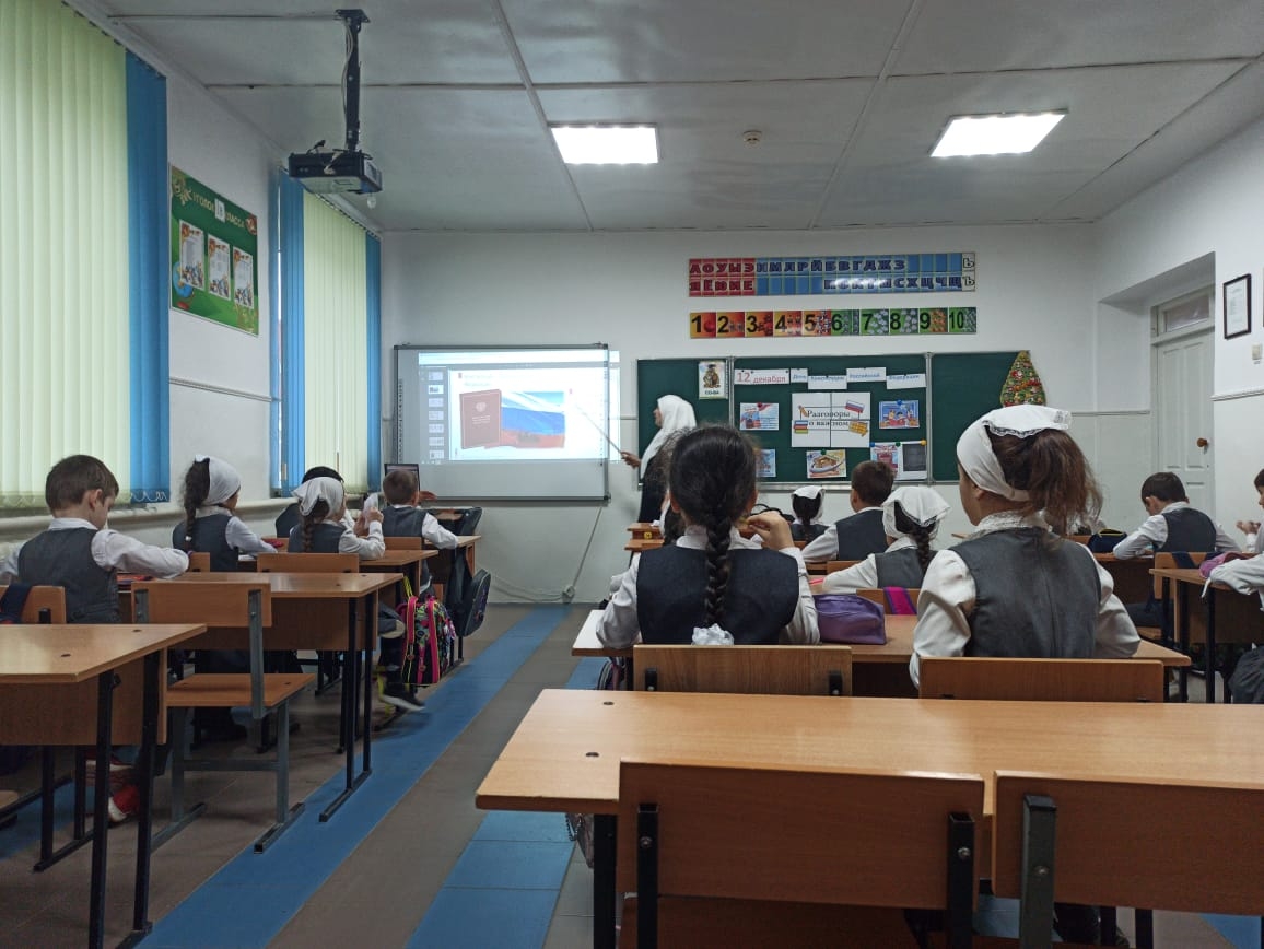 В МБОУ СОШ с.Беркат-Юрт классные руководители провели урок Разговор о важном на тему "День Конституции"