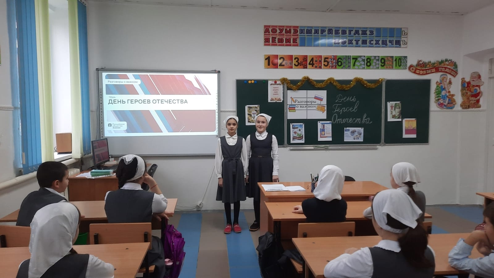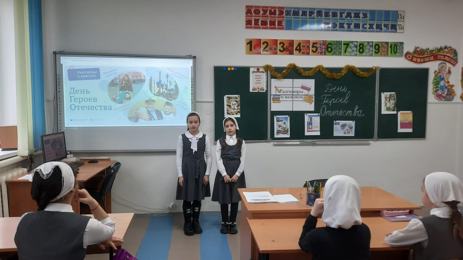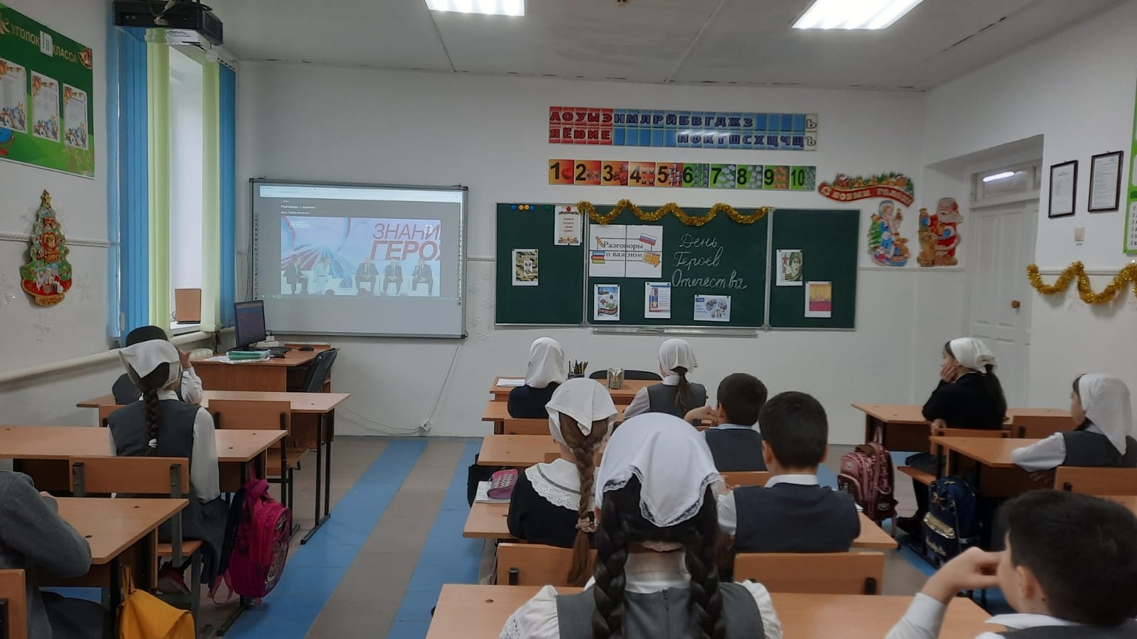 В МБОУ СОШ с.Беркат-Юрт классные руководители провели урок Разговор о важном на тему "День героев отечества"