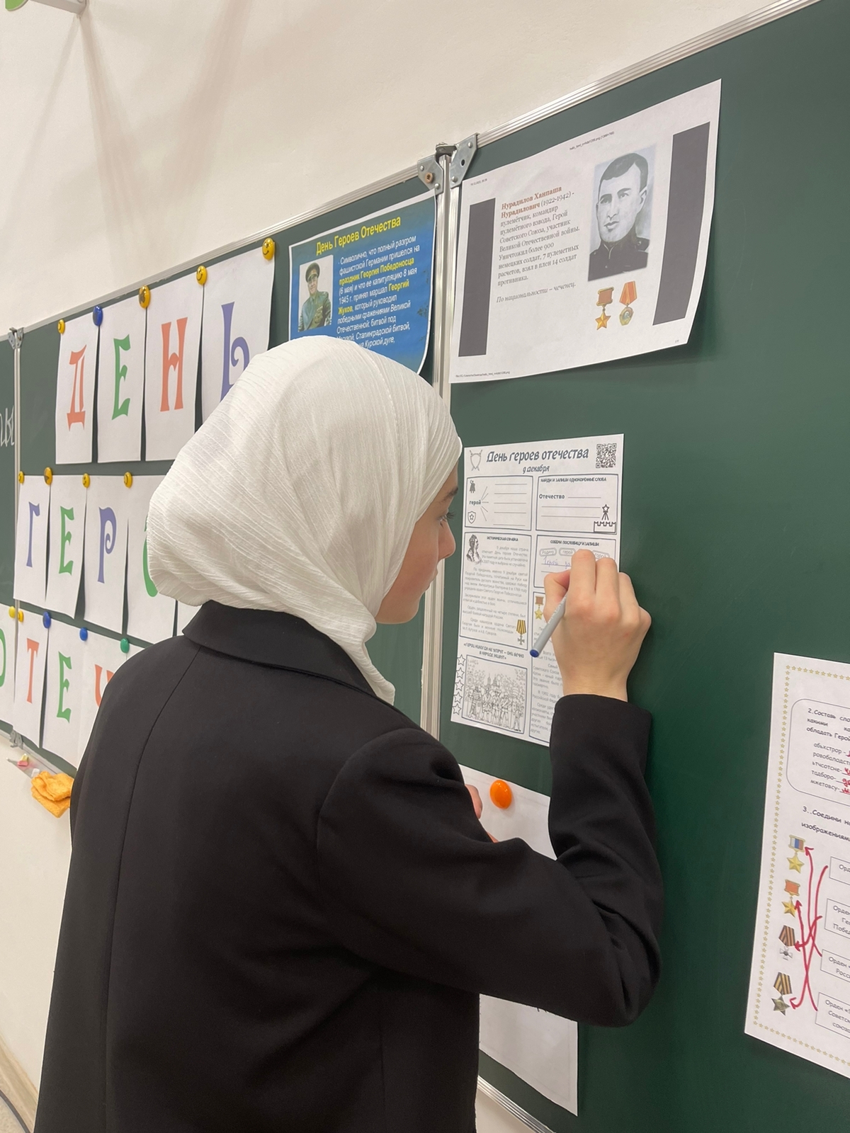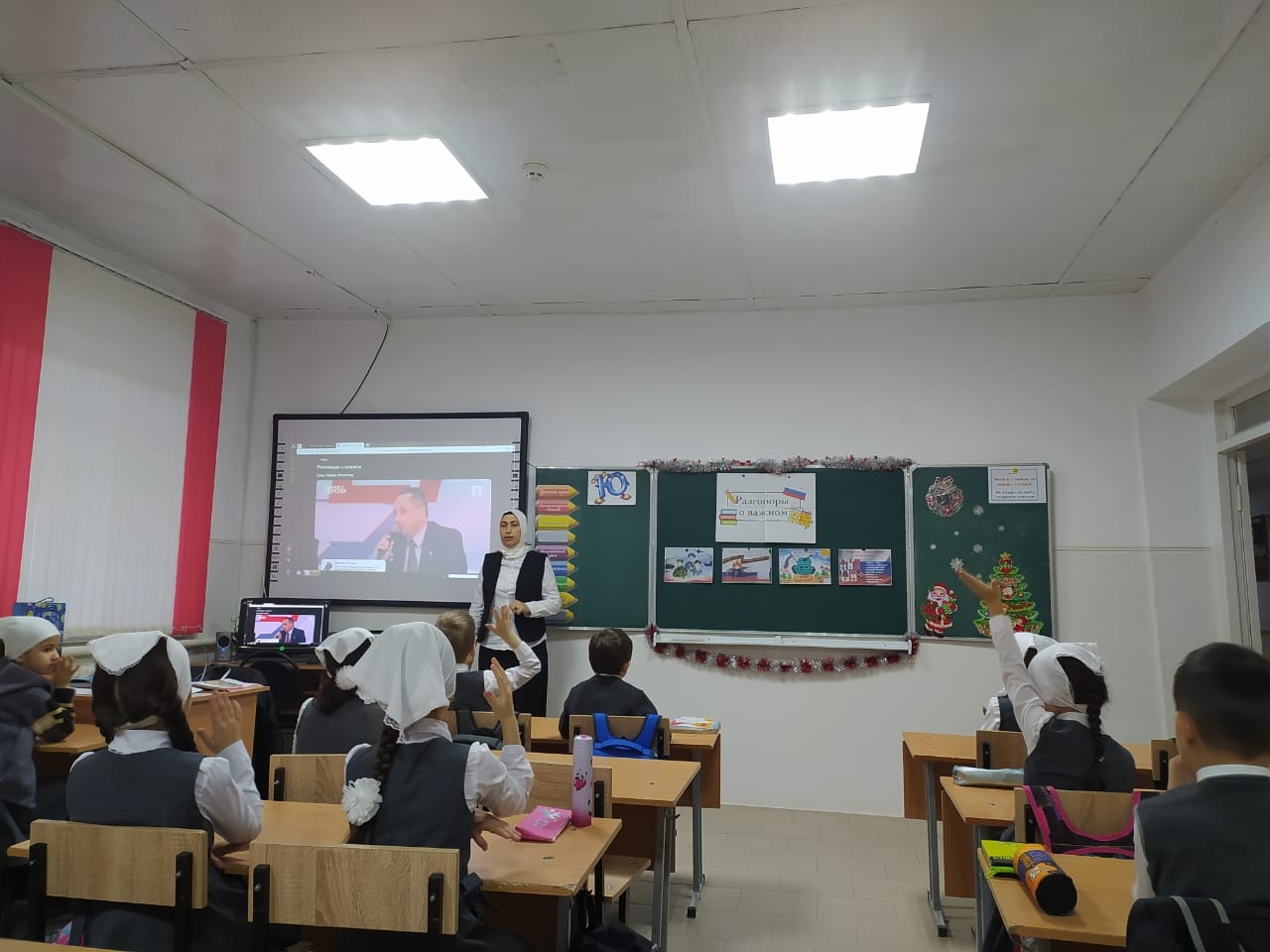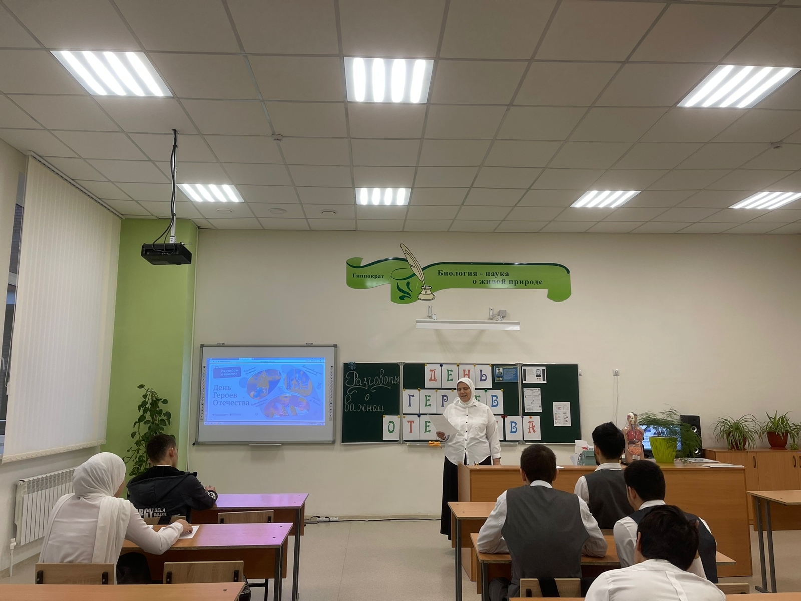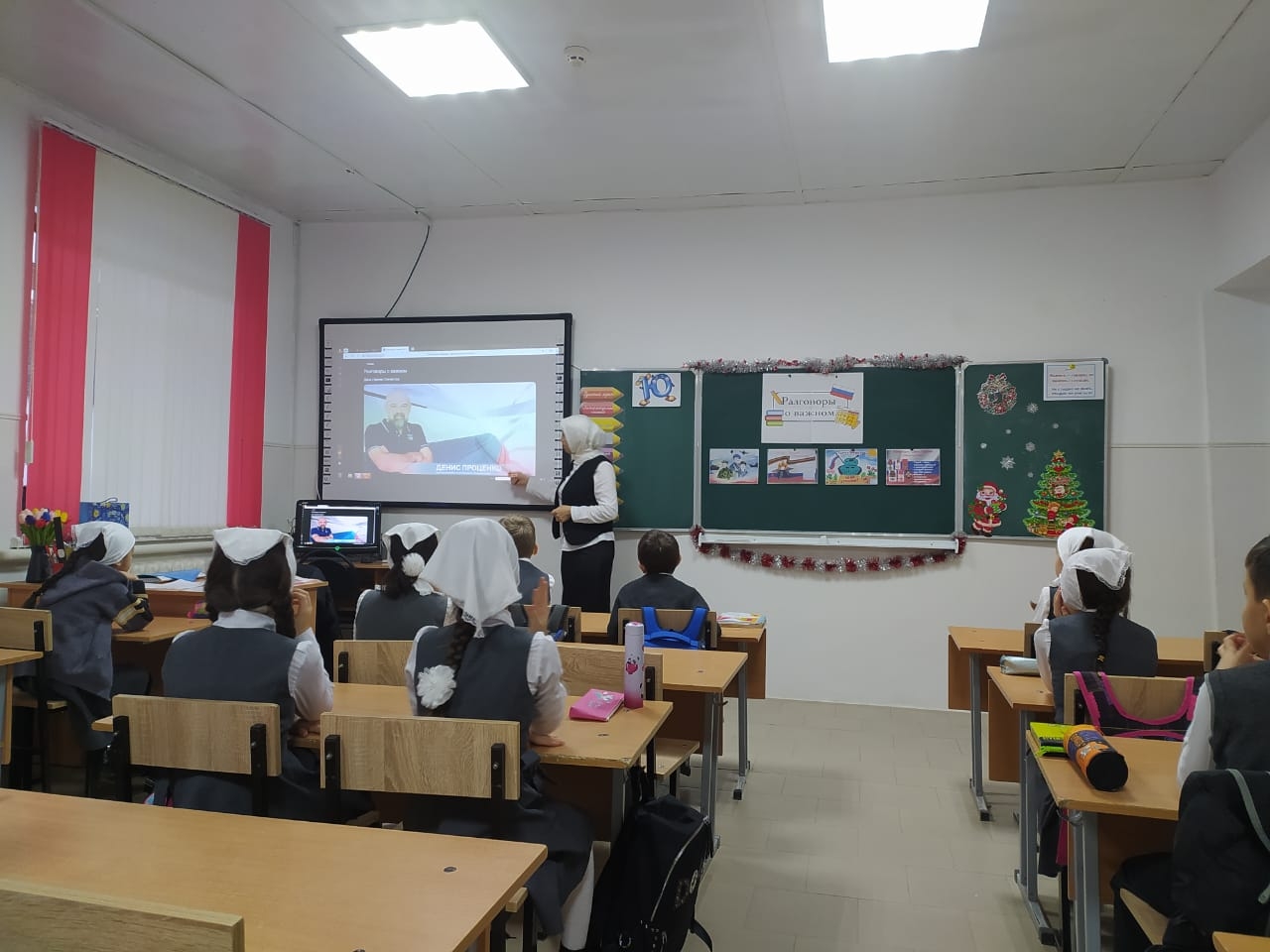 В МБОУ СОШ с.Беркат-Юрт классные руководители провели урок Разговор о важном на тему "День героев отечества"