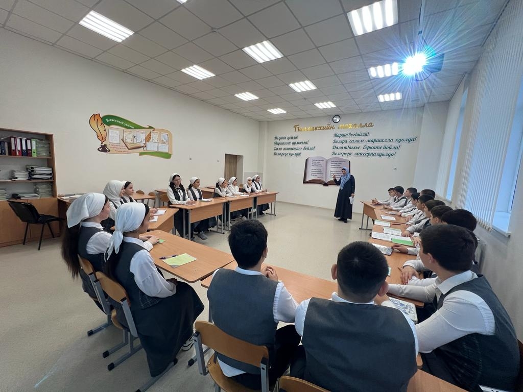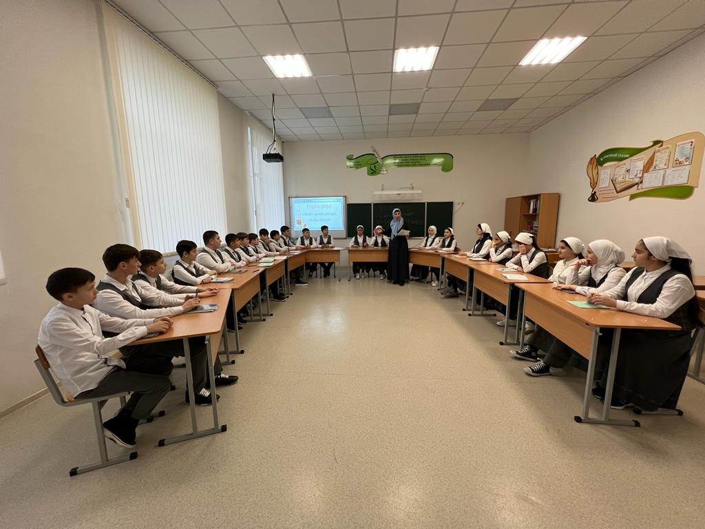20.01.23 В МБОУ "СОШ с. Беркат-Юрт" проведен круглый стол "Дайн мотт-инзаре, оьзда, тохке" в рамках реализации плана мероприятий, посвящённых Году чеченскому языку. Круглый стол организован и проведен учителем чеченского языка Вакаевой Т.С.