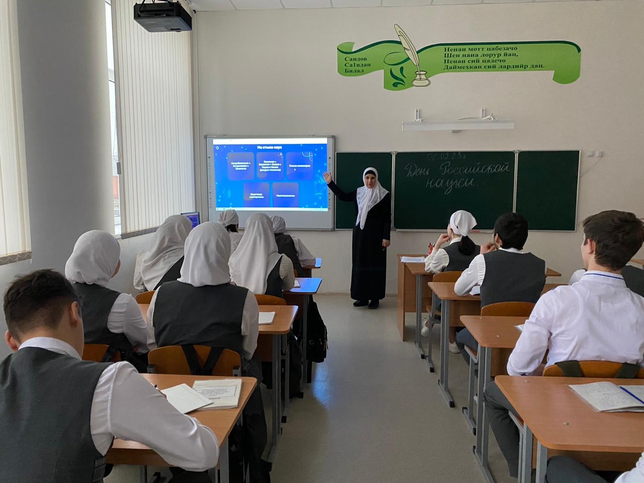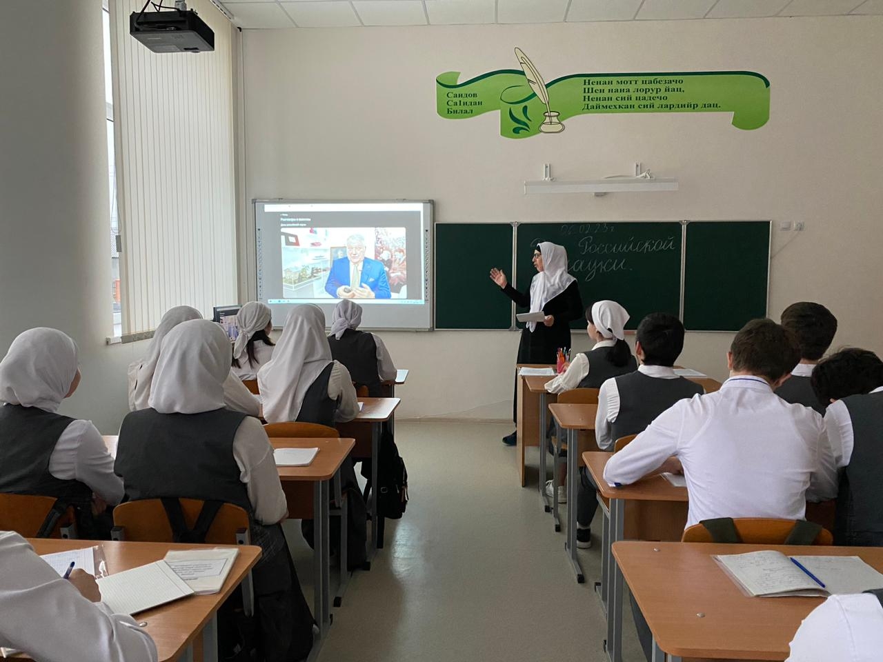 В МБОУ СОШ с.Беркат-Юрт классные руководители провели урок Разговор о важном на тему "День Российской науки"
