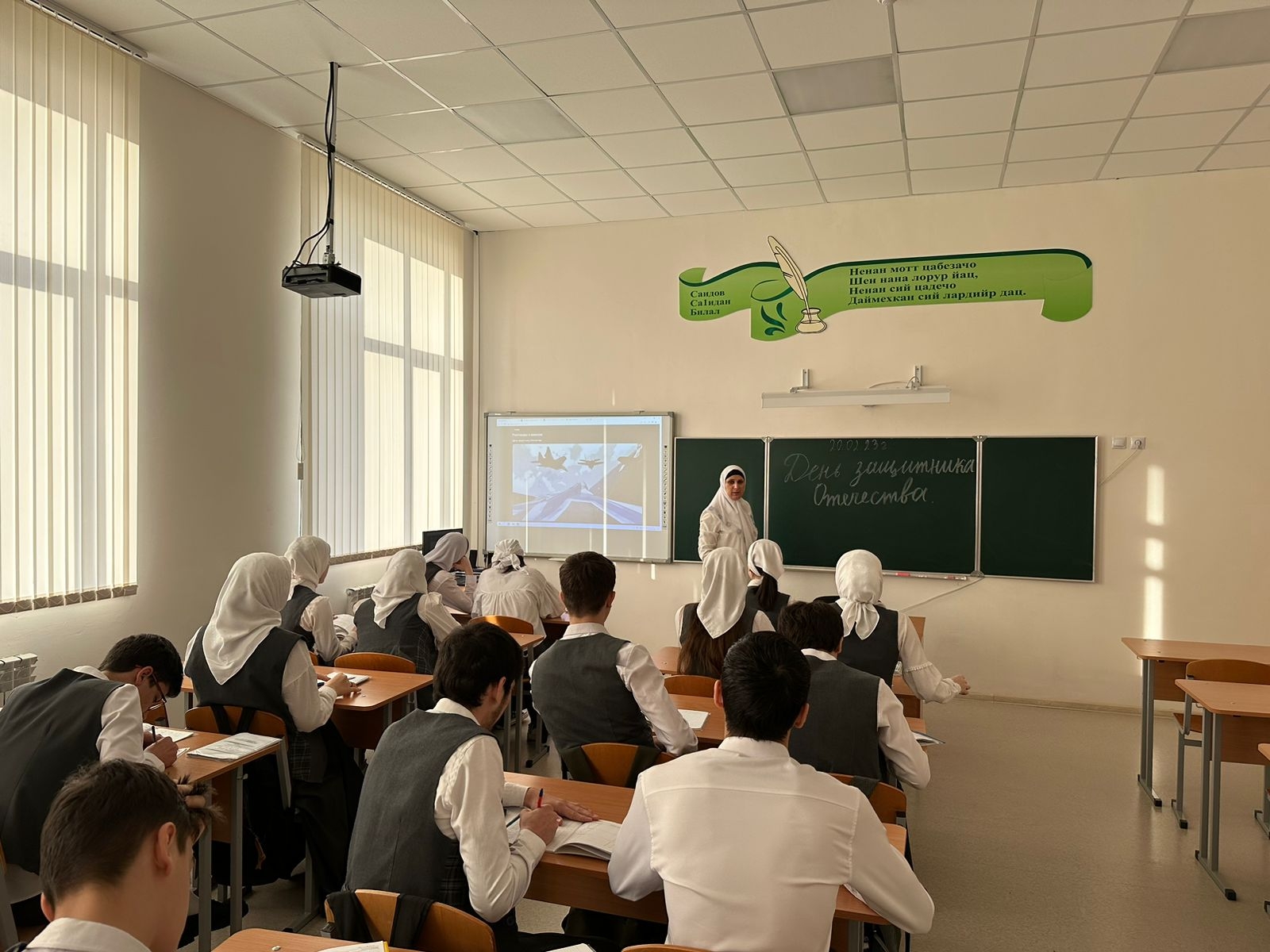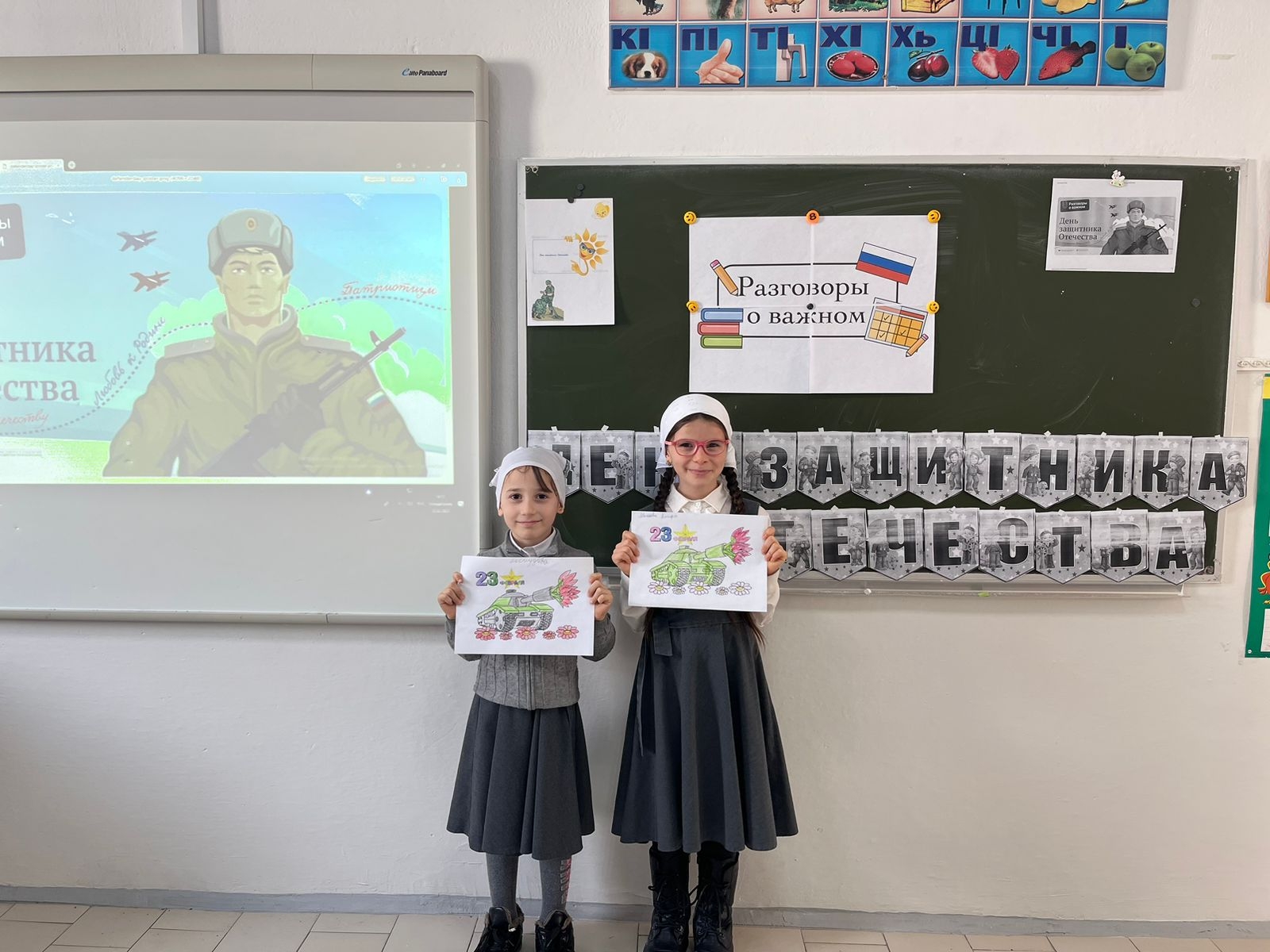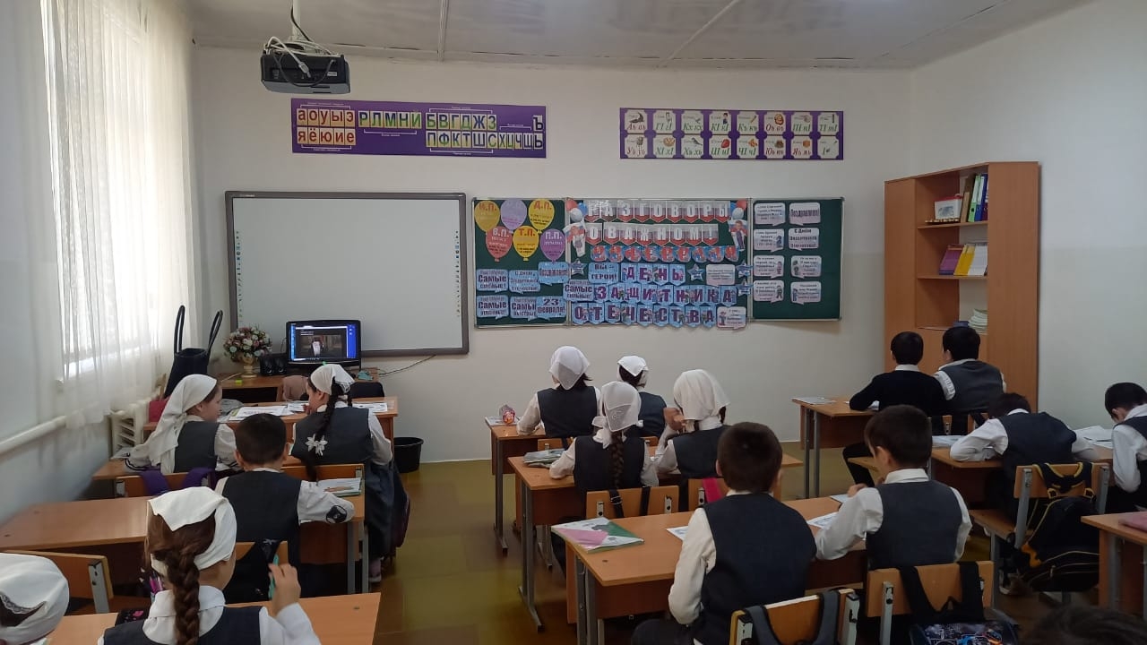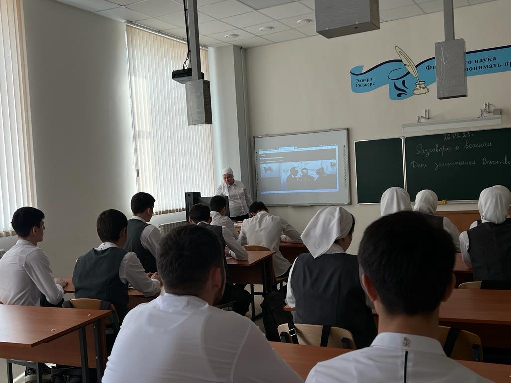 В МБОУ СОШ с.Беркат-Юрт классные руководители провели урок Разговор о важном на тему "День защитника отечества"