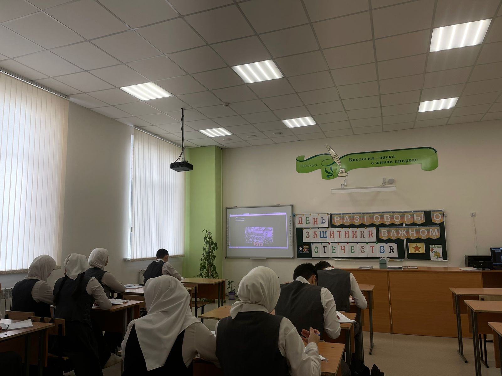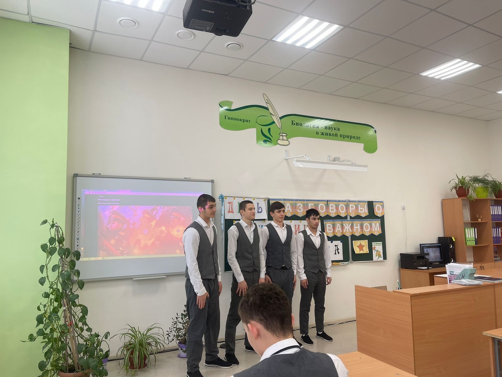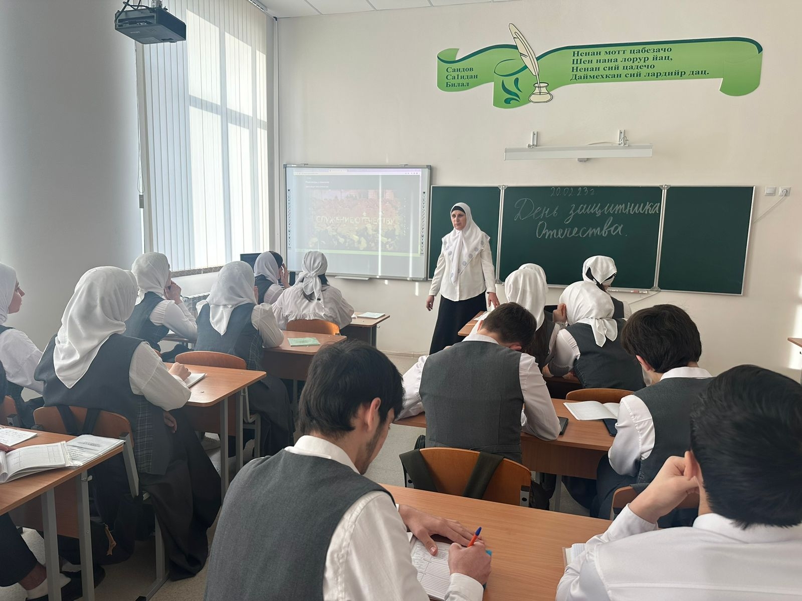 В МБОУ СОШ с.Беркат-Юрт классные руководители провели урок Разговор о важном на тему "День защитника отечества"