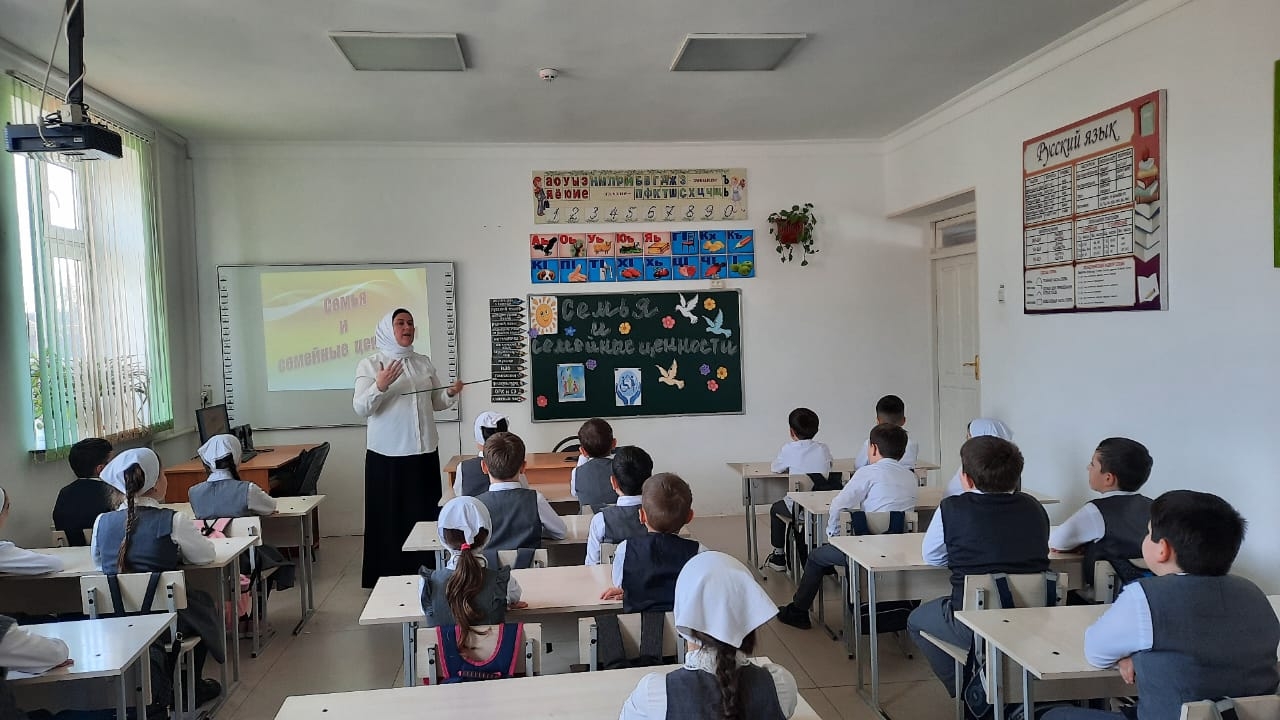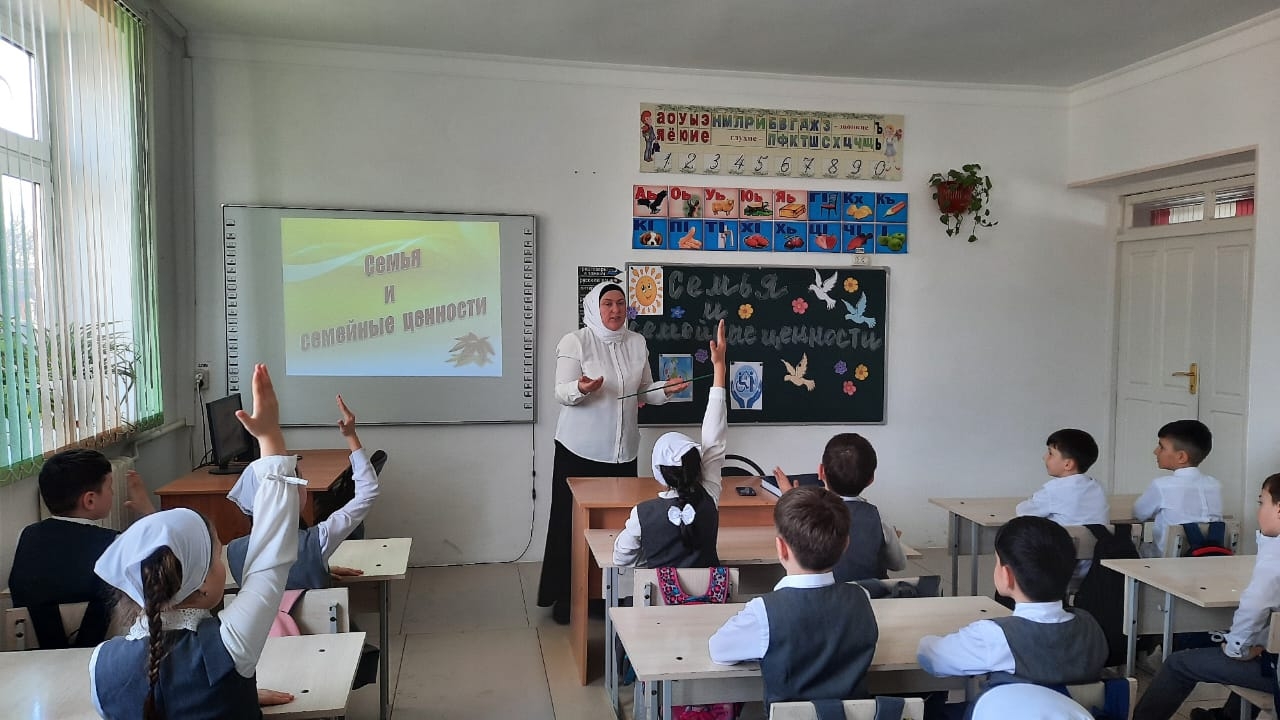 В МБОУ "СОШ с.Беркат-Юрт 17.03. 2023 классный руководитель 3 б класса Болтаева З.А., провела классный час на тему: «Семья и семейные ценности»