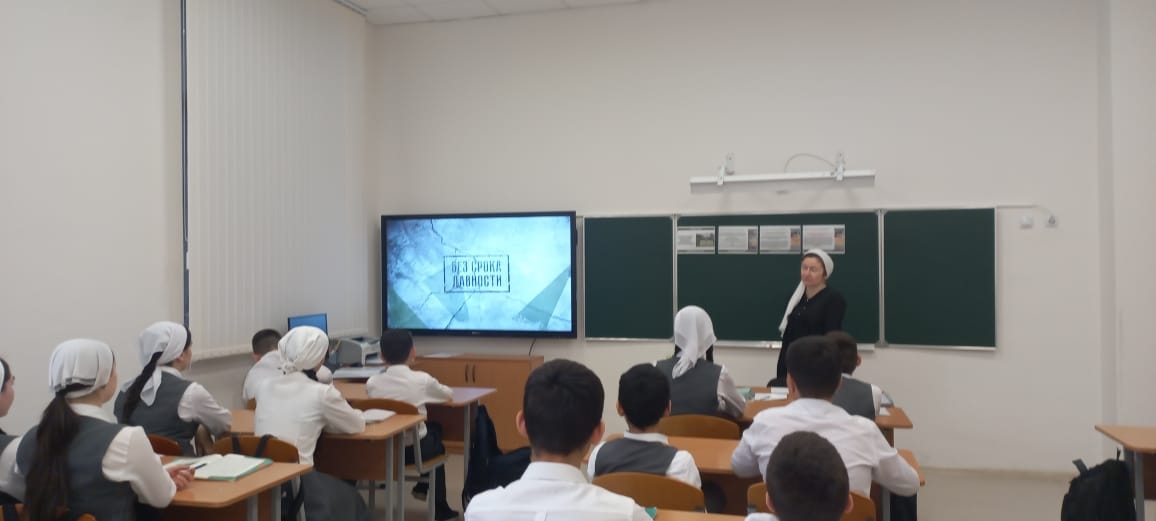 С 11.04.2023 в МБОУ "СОШ с.Беркат-ЮРт проведен единый урок " Без срока давности"