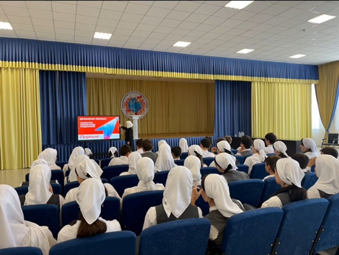 В МБОУ СОШ с. Беркат-Юрт 15.09.2023г прошла встреча с презентацией Российского движения детей и молодёжи «Движение первых». «Движение первых»- это площадка для организации досуга, создания возможностей для всестороннего развития и самореализации, а также профессиональной ориентации детей.
