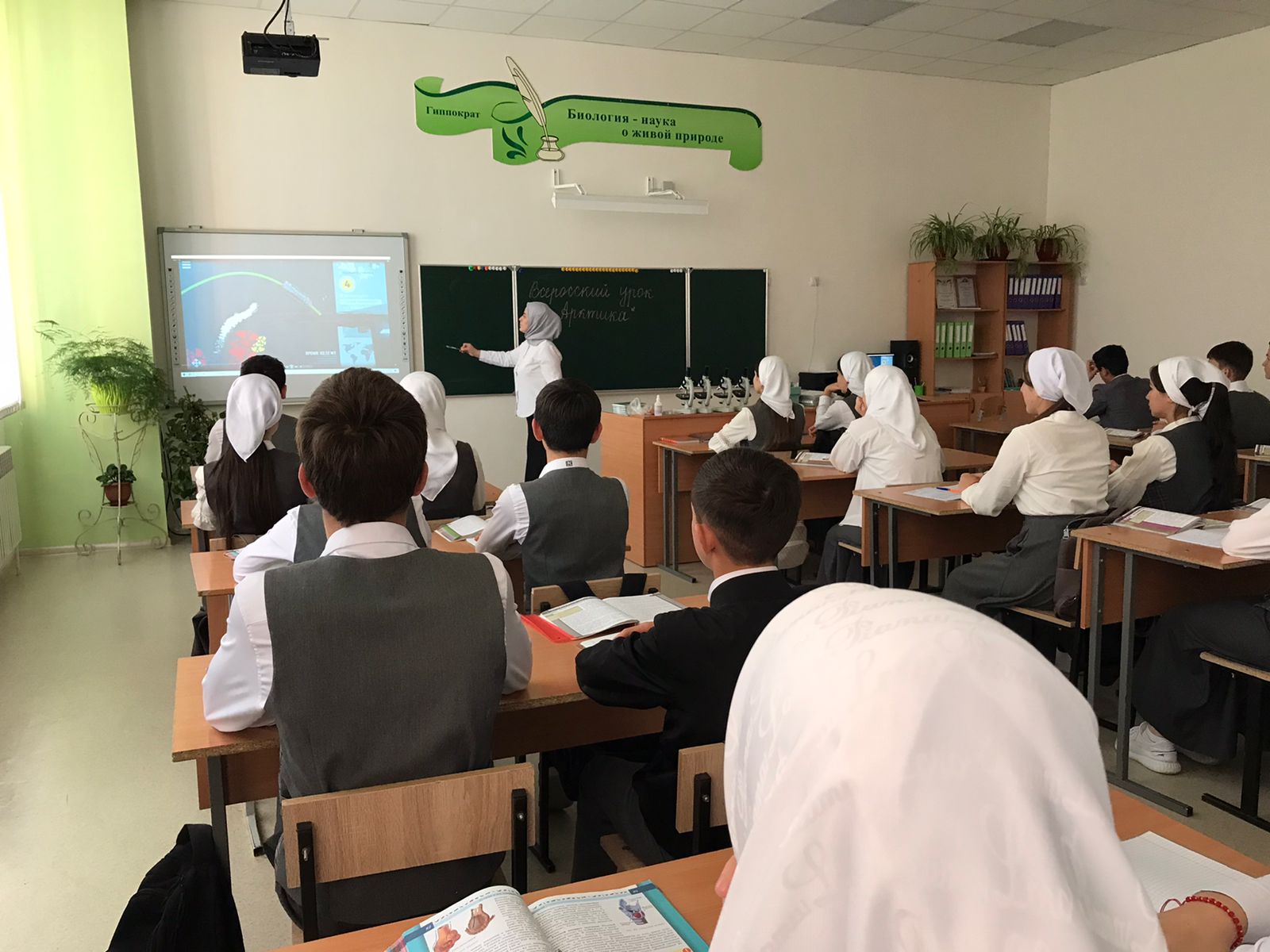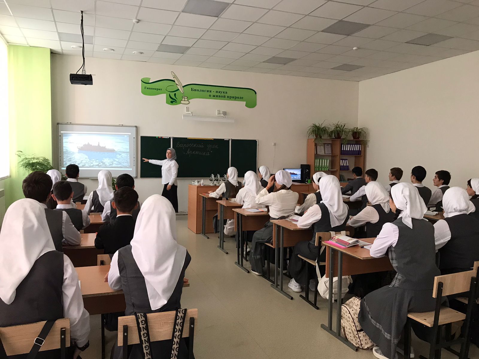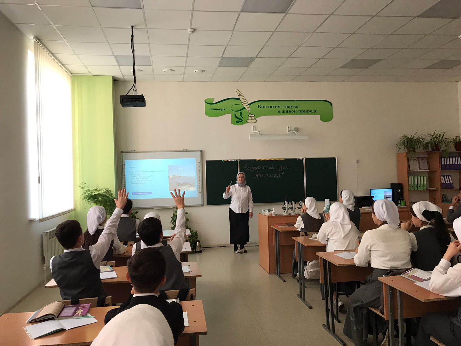 В МБОУ «СОШ с.Беркат-Юрт 08.11.2023г прошел Всероссийский урок «Арктика», целью урока было формирование представления обучающихся об Арктике, о её природе, истории исследования и освоения. Урок прошел в форме игры-викторины, после просмотра презентации ребята отвечали на вопросы , выполняли творческие задания .