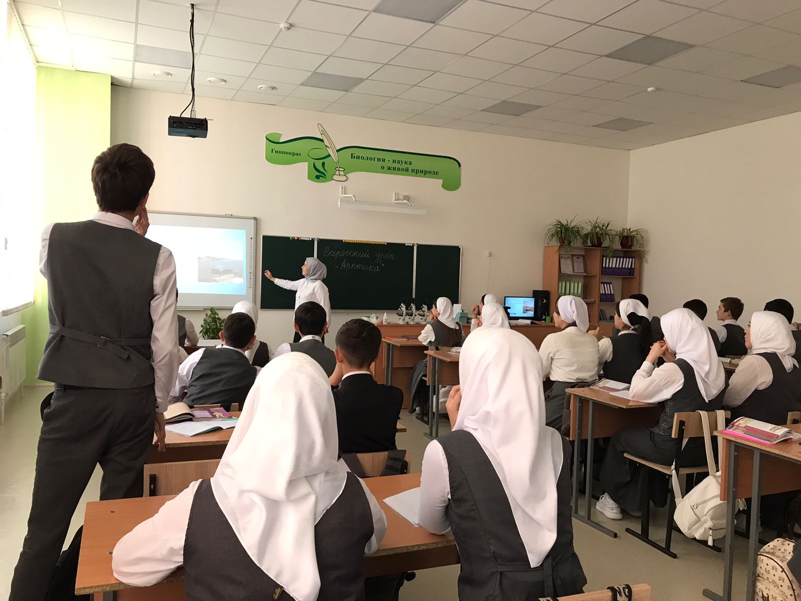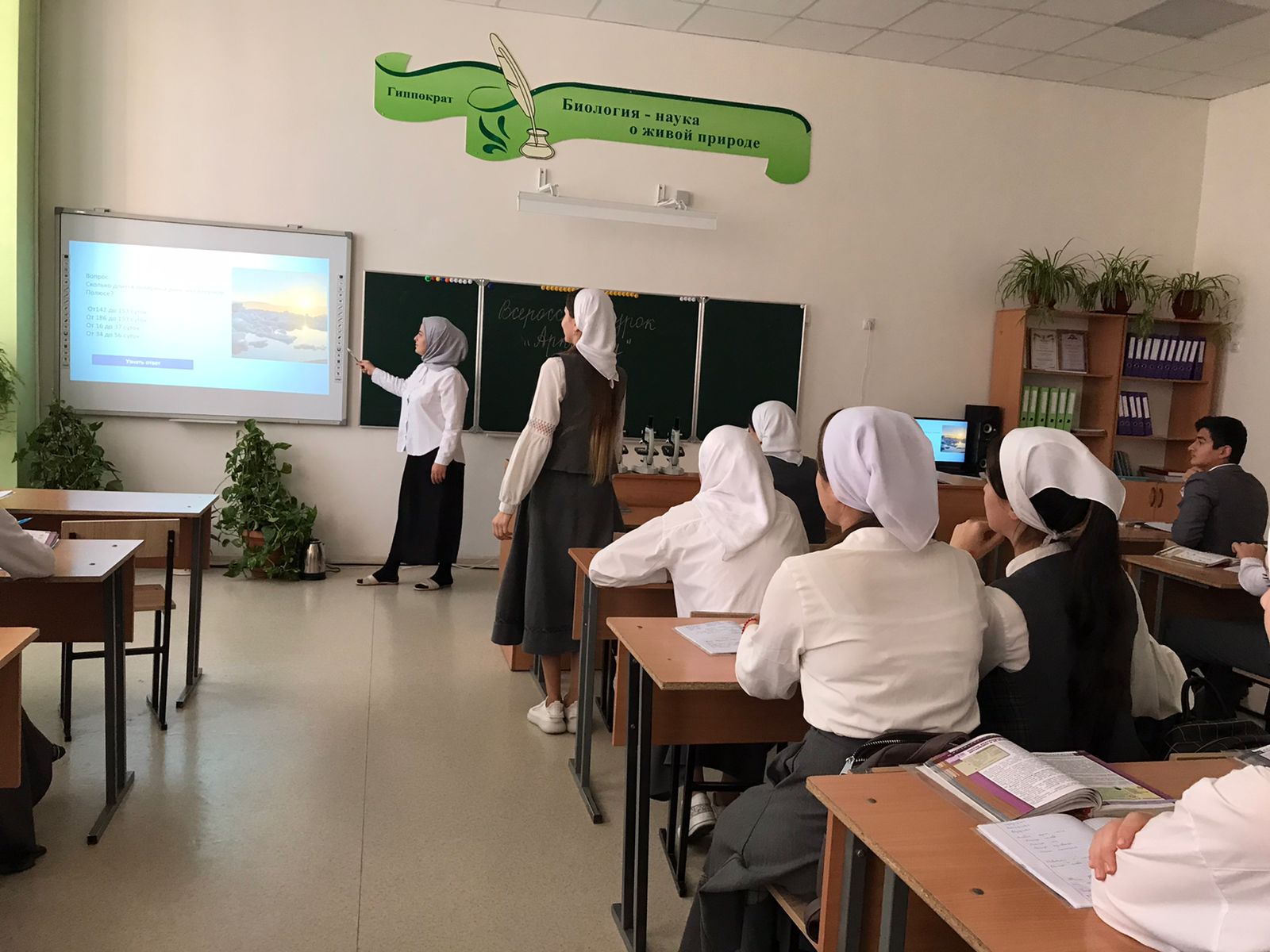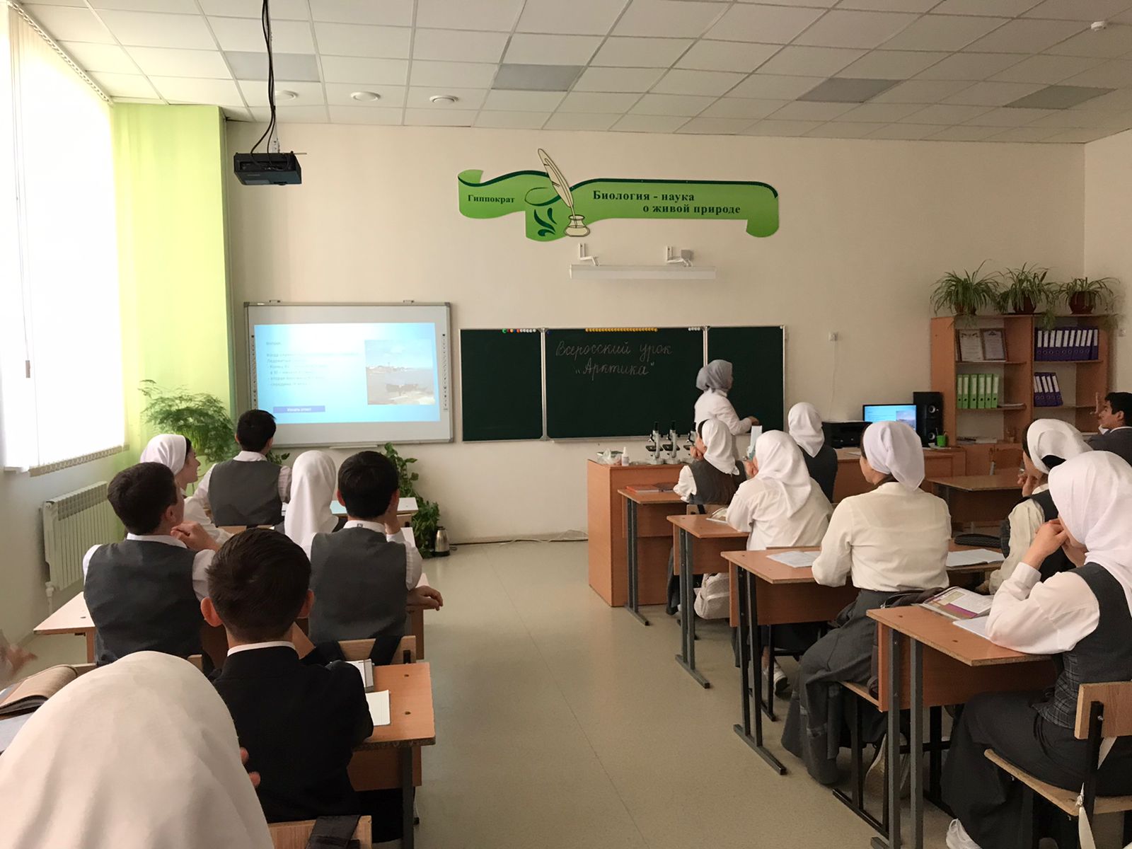 В МБОУ «СОШ с.Беркат-Юрт 08.11.2023г прошел Всероссийский урок «Арктика», целью урока было формирование представления обучающихся об Арктике, о её природе, истории исследования и освоения. Урок прошел в форме игры-викторины, после просмотра презентации ребята отвечали на вопросы , выполняли творческие задания .