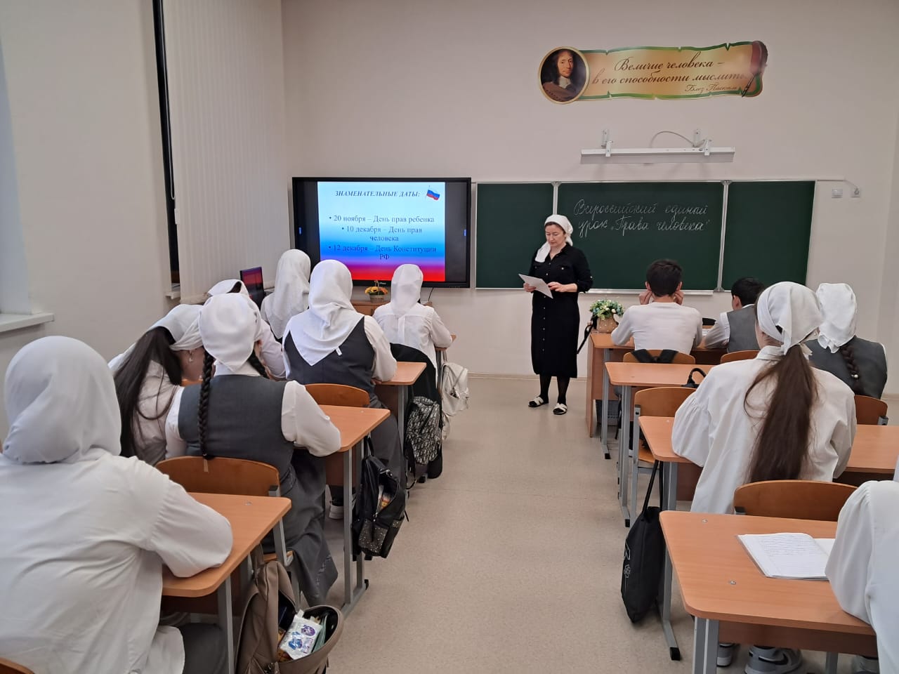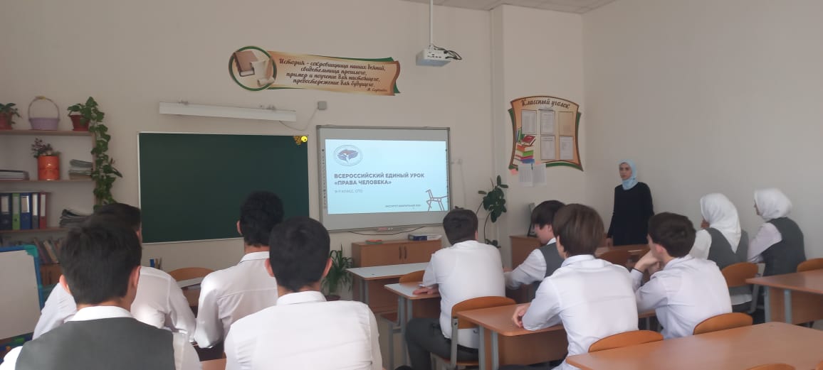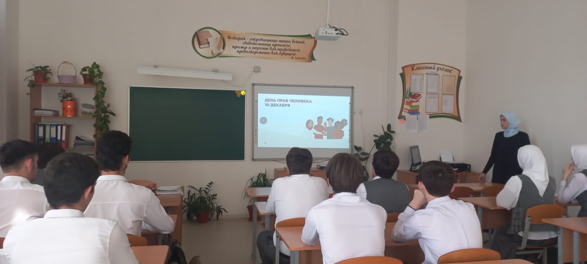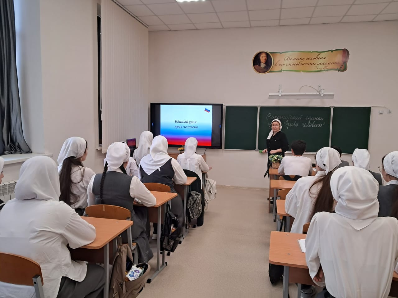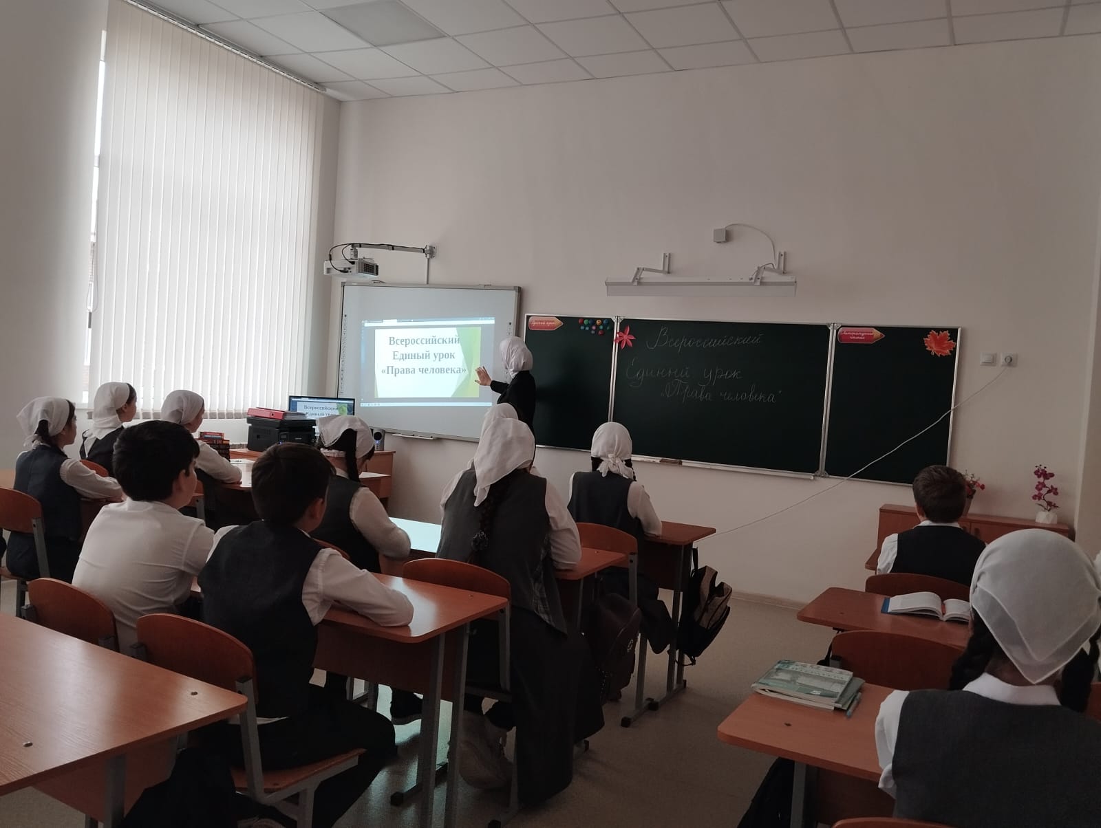 07.12.2023 в МБОУ "СОШ.с.Беркат-Юрт" проведен Всероссийский единый урок приуроченный к 75-летию Всеобщей декларации прав человека и 30-летию Конституции Российской Федерации.
