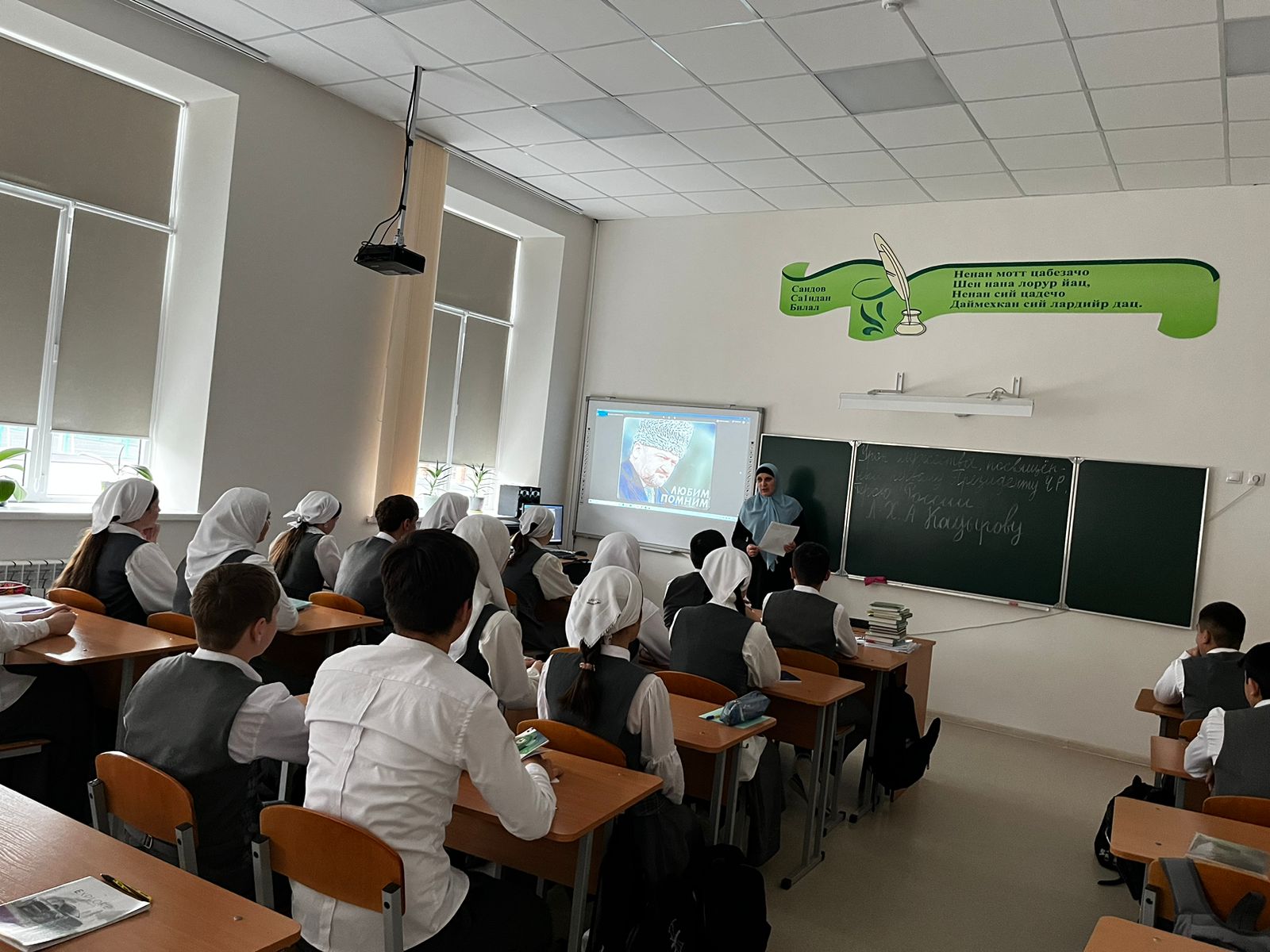 04-06.12.2023года в МБОУ СОШ с.Беркат-Юрт проведён урок мужества посвящённому призеденту ЧР, Герою России А-Х Кадырову