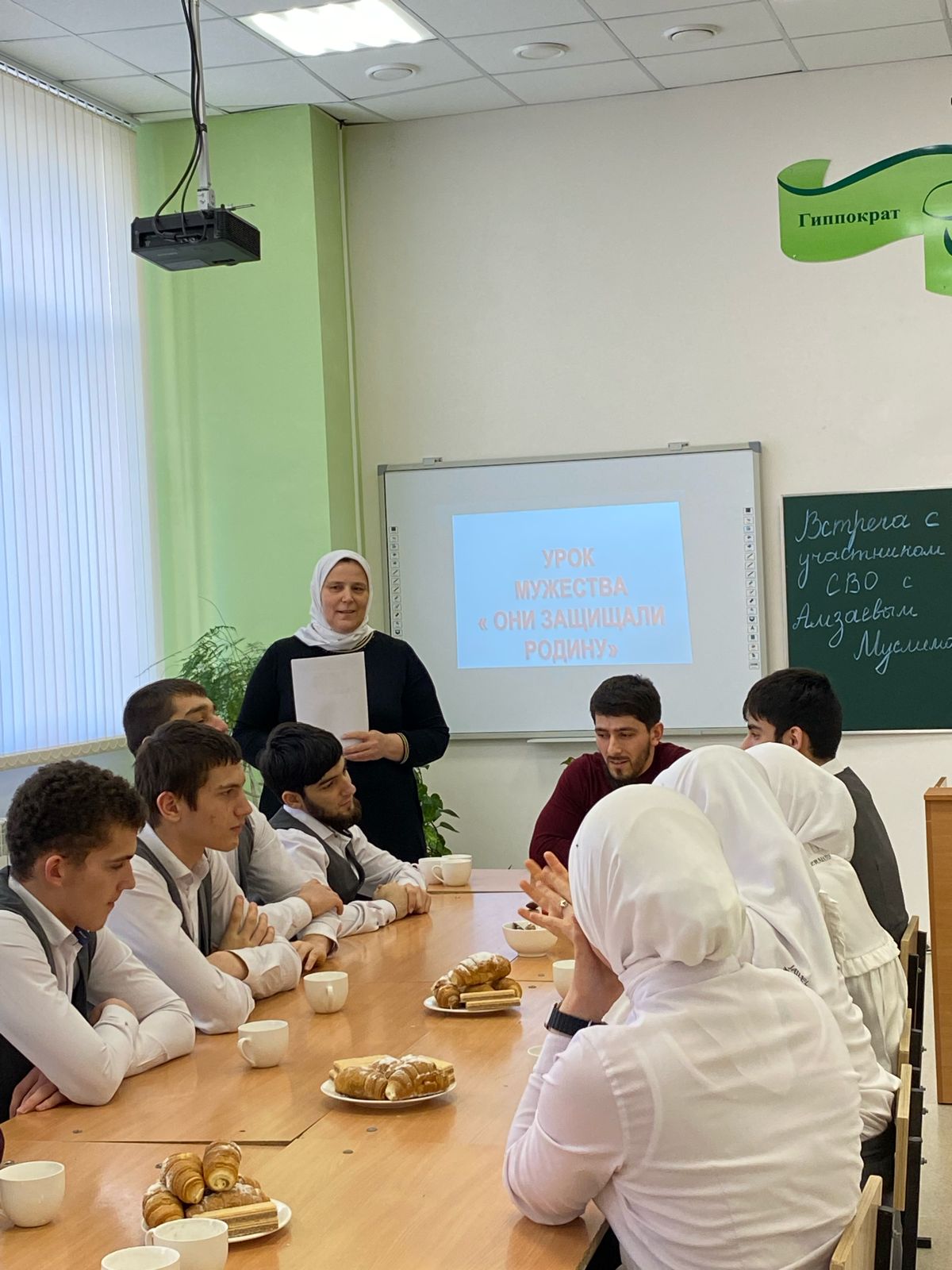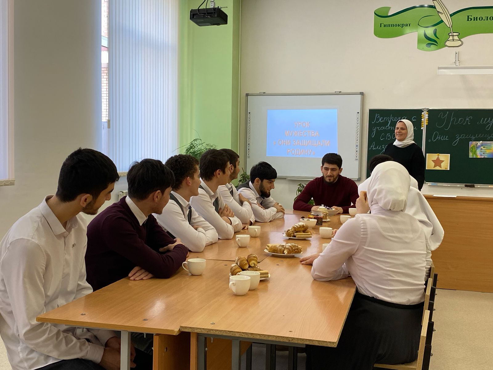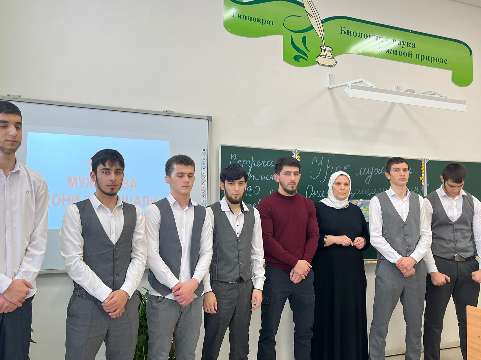 14 февраля в МБОУ "СОШ с.Беркат-Юрт" проведен урок мужества "Они защищали Родину" с приглашением участника СВО Амзаева Муслима.