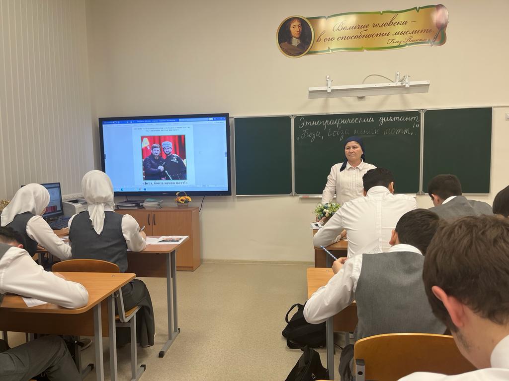 В рамках празднования Международного дня родного языка, с целью повышения интереса к изучению родного языка и литературы, истории и этнографии Чеченской Республики, улучшения культуры письменной речи и общей грамотности, 16.02.2024 года в МБОУ « СОШ с. Беркат-Юрт проведен Региональный этнографический диктант «Беза, бовза ненан мотт!»