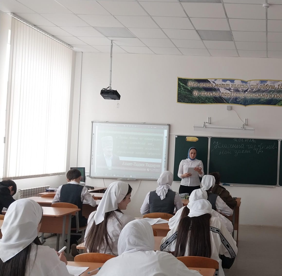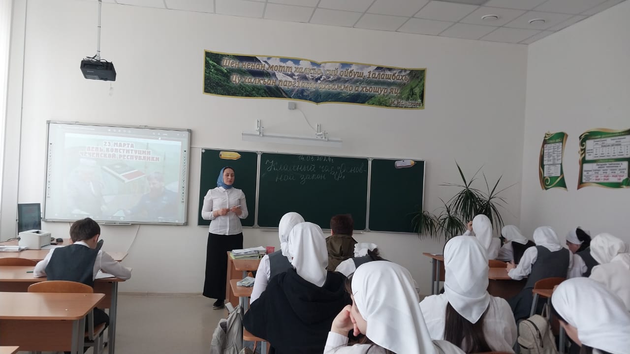С 11.03-23.03 в МБОУ "СОШ с.Беркат-Юрт" проведены классные часы, приуроченные ко Дню Конституции Чеченской Республики