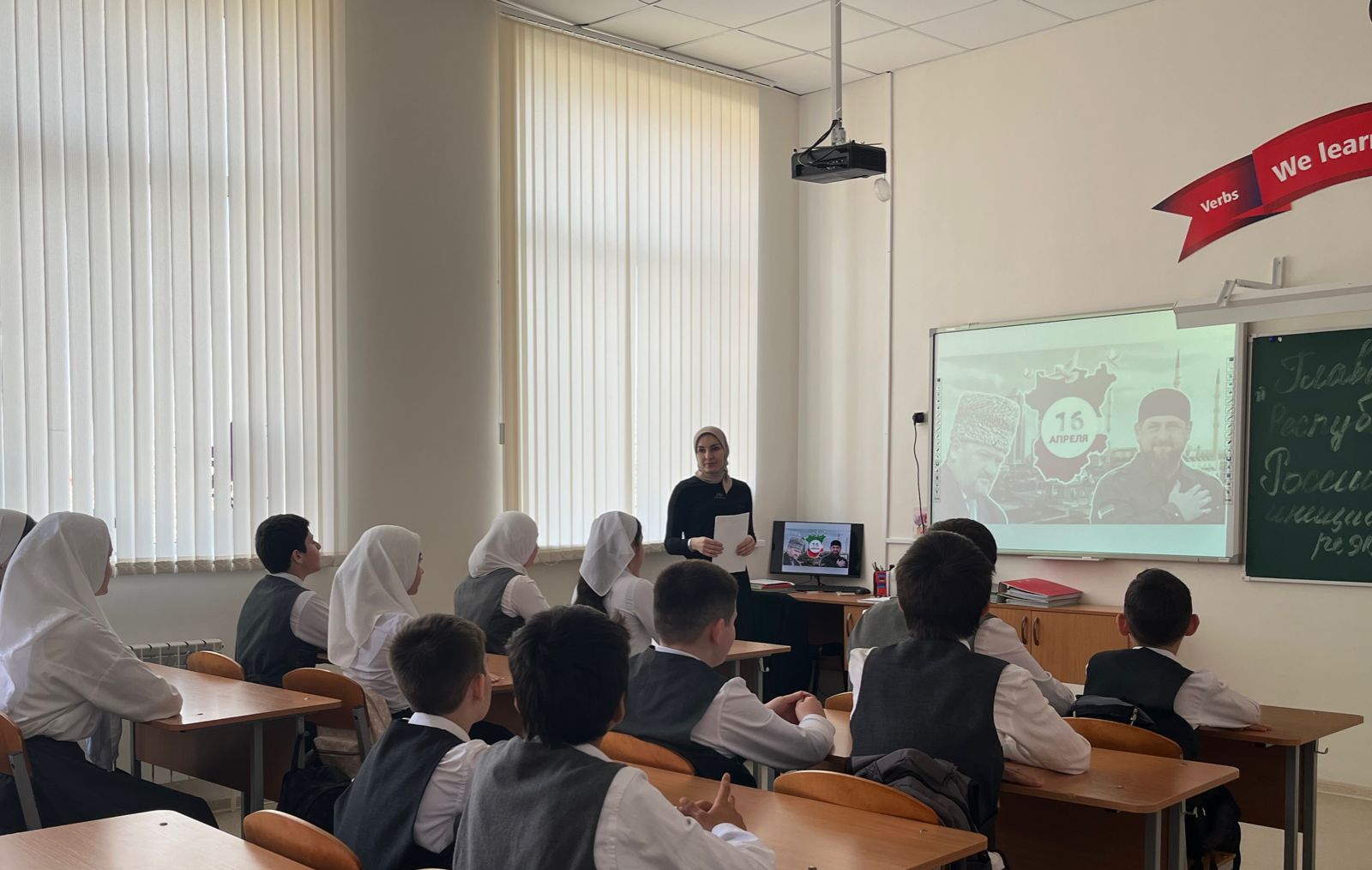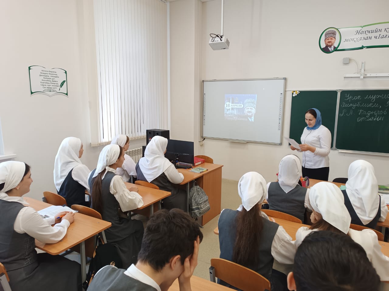 4 апреля в МБОУ "СОШ с.Беркат-Юрт проведён Урок мужества " Глава Чеченской Республики, Герой России Р.А.Кадыров- инициатор отмены режима КТО" с обучающимися 9-11 классов.