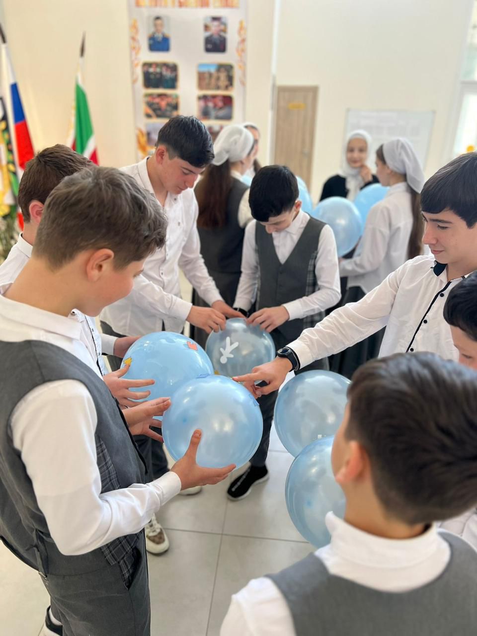 03.04.2024г. педагог-психолог Дудаева М.Д. совместно с социальным педагогом Джамалуевой А.У провели акцию на тему: «Мир один на всех» где обучающиеся 7 класса приклеили разноцветных человечков на шары и пустили их в небо.