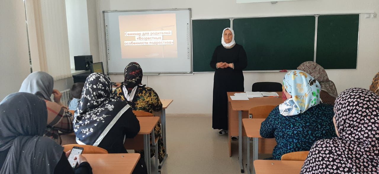 12.03.2024г. В МБОУ «СОШ с. Беркат-Юрт» прошел семинар для родителей на тему: «Возрастные особенности подростков».