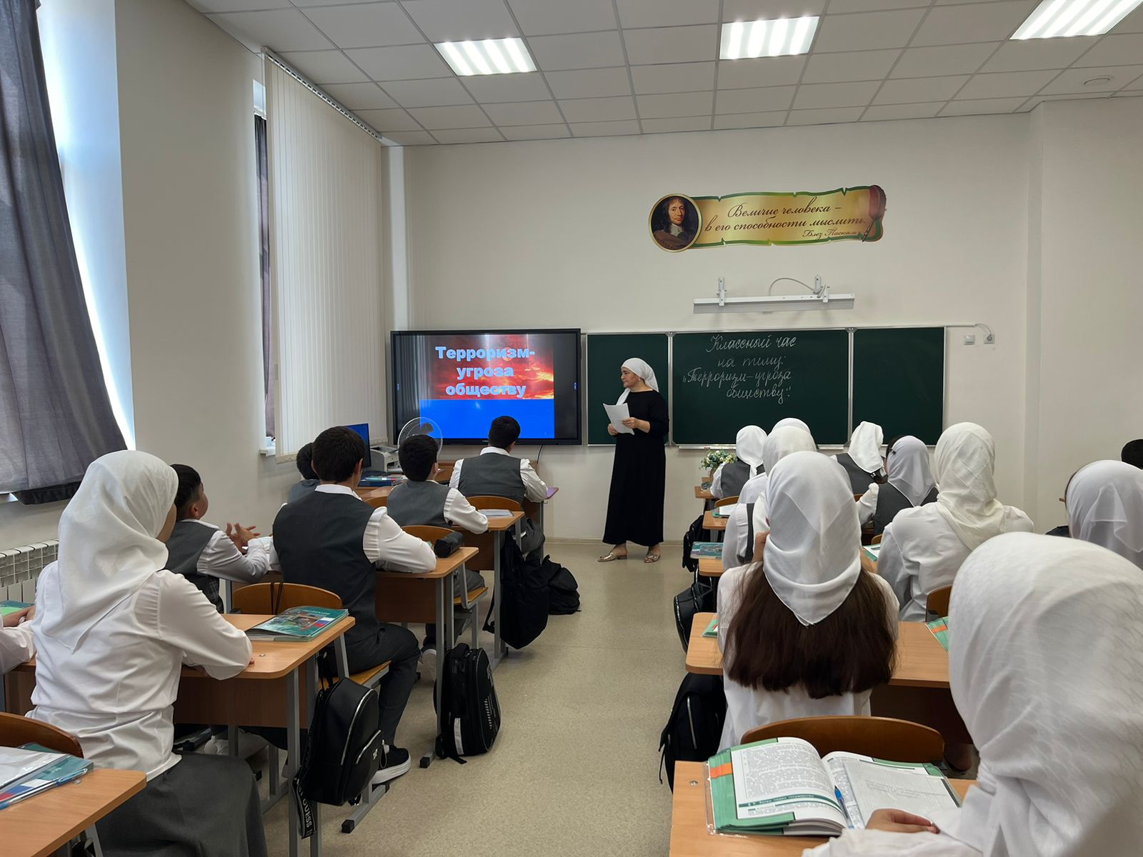 В рамках реализации Единой Концепции духовно-нравственного воспитания и развития подрастающего поколения 02.09.2024 с обучающимися 9 г класса проведен классный час на тему: «Терроризм-угроза обществу», с целью по недопущению проявления в молодежной среде таких негативных явлений как терроризм, экстремизм и ваххабизм.