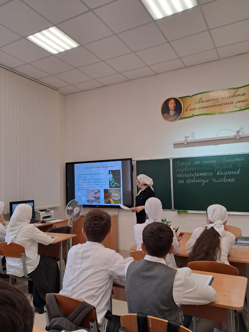 В рамках реализации Единой Концепции духовно-нравственного воспитания и развития подрастающего поколения 13.09.2024 классный руководитель Тимиргириева Л.Х. провела беседа на тему: «Влияние наркотических средств, алкоголя и табакорения на организм человека».