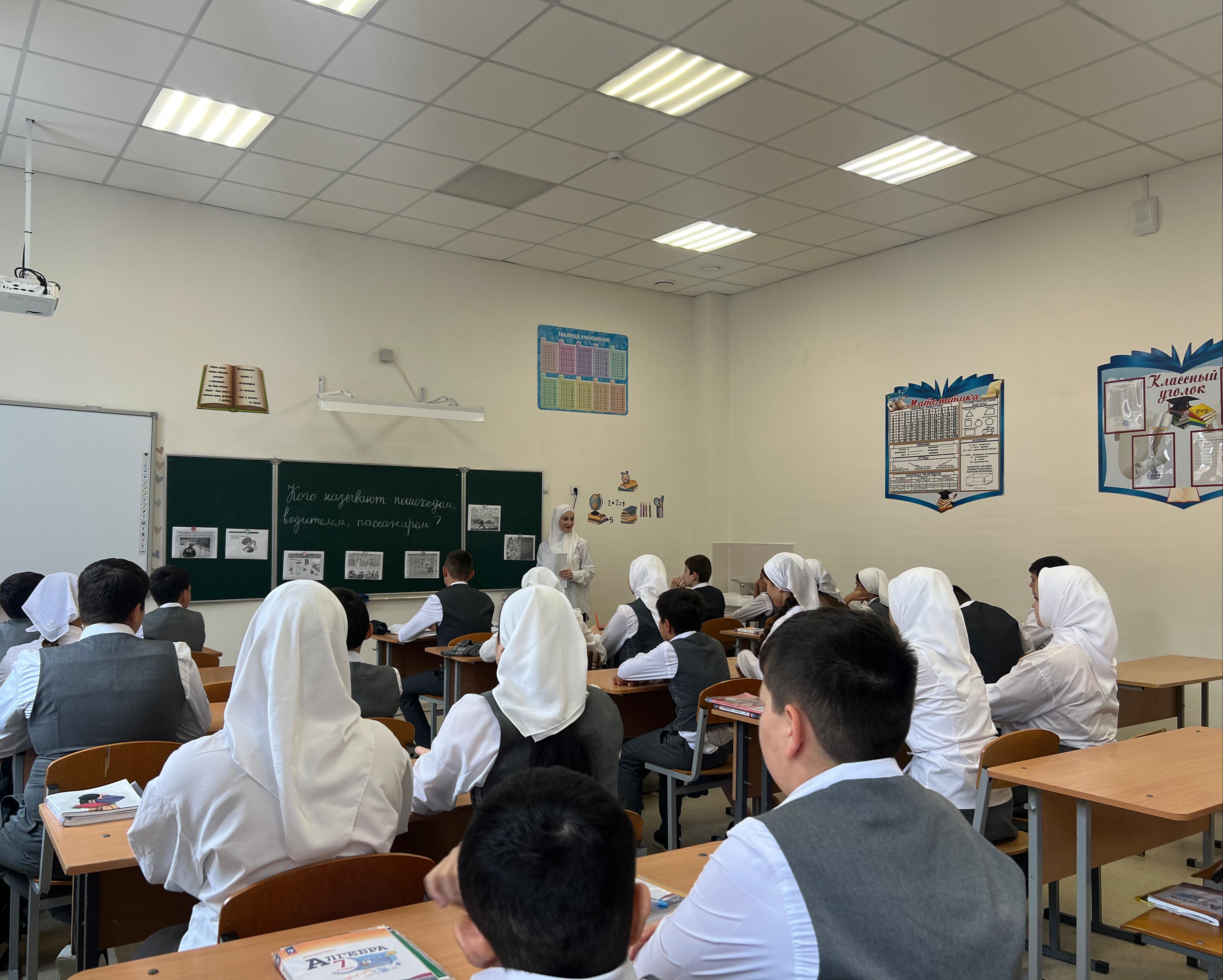 18.09.2024 в рамках недели безопасности в МБОУ «СОШ с.Беркат-Юрт» классный руководитель Чолаева Т.Х. провела профилактическую беседу по профилактике ДТП с обучающимися 7д класса.