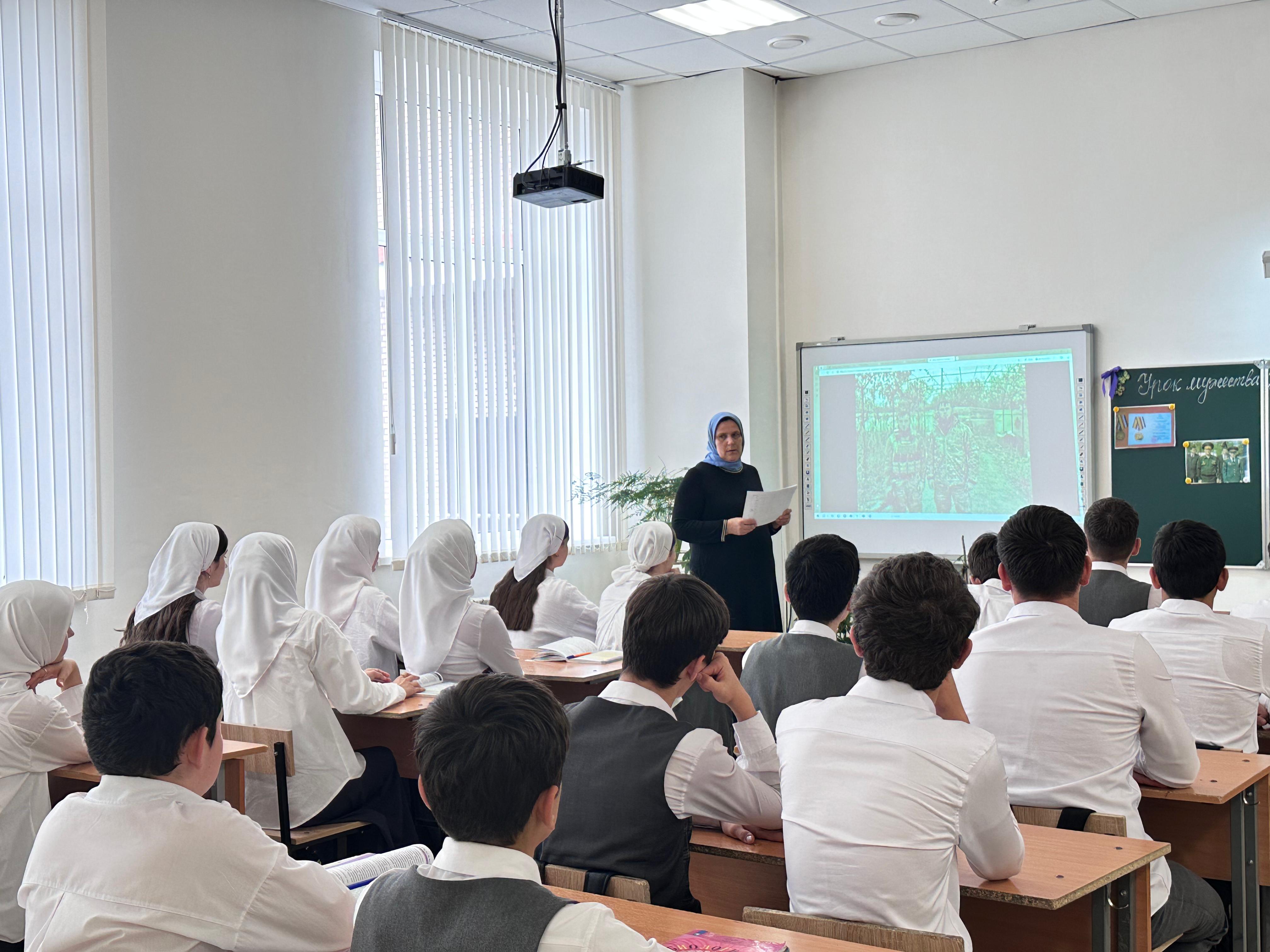 16 октября 2024 года в МБОУ "СОШ с.Беркат-Юрт" проведён урок мужества, посвящённый участникам специальной военной операции, проявившим отвагу, мужества и героизм.