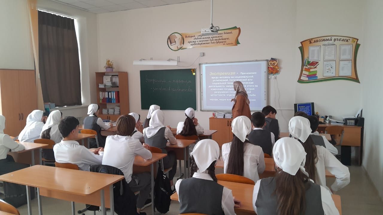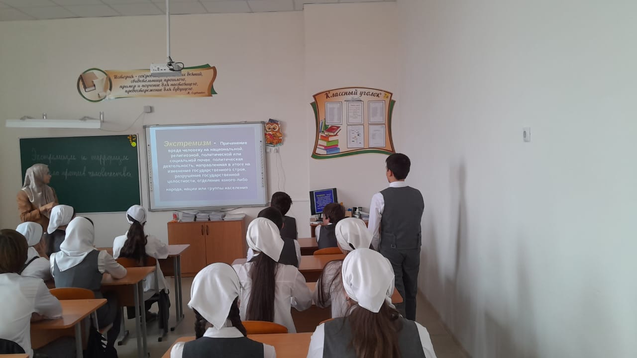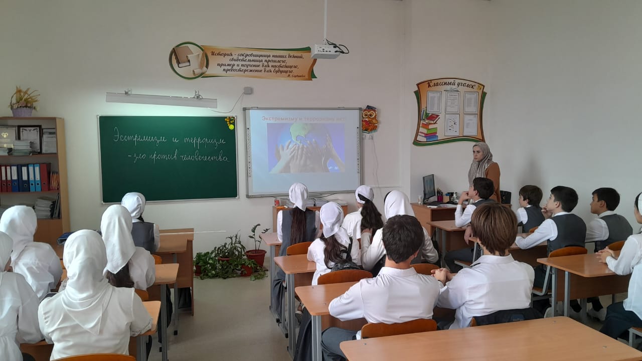 16 октября в МБОУ "СОШ с.Беркат-Юрт" проведена беседа на тему "Экстремизм и терроризм-зло против человечества" с обучающимися 9д класса, основной целью стало недопущению проявления в молодёжный среде таких негативных явлений как терроризм, экстремизм ваххабизм