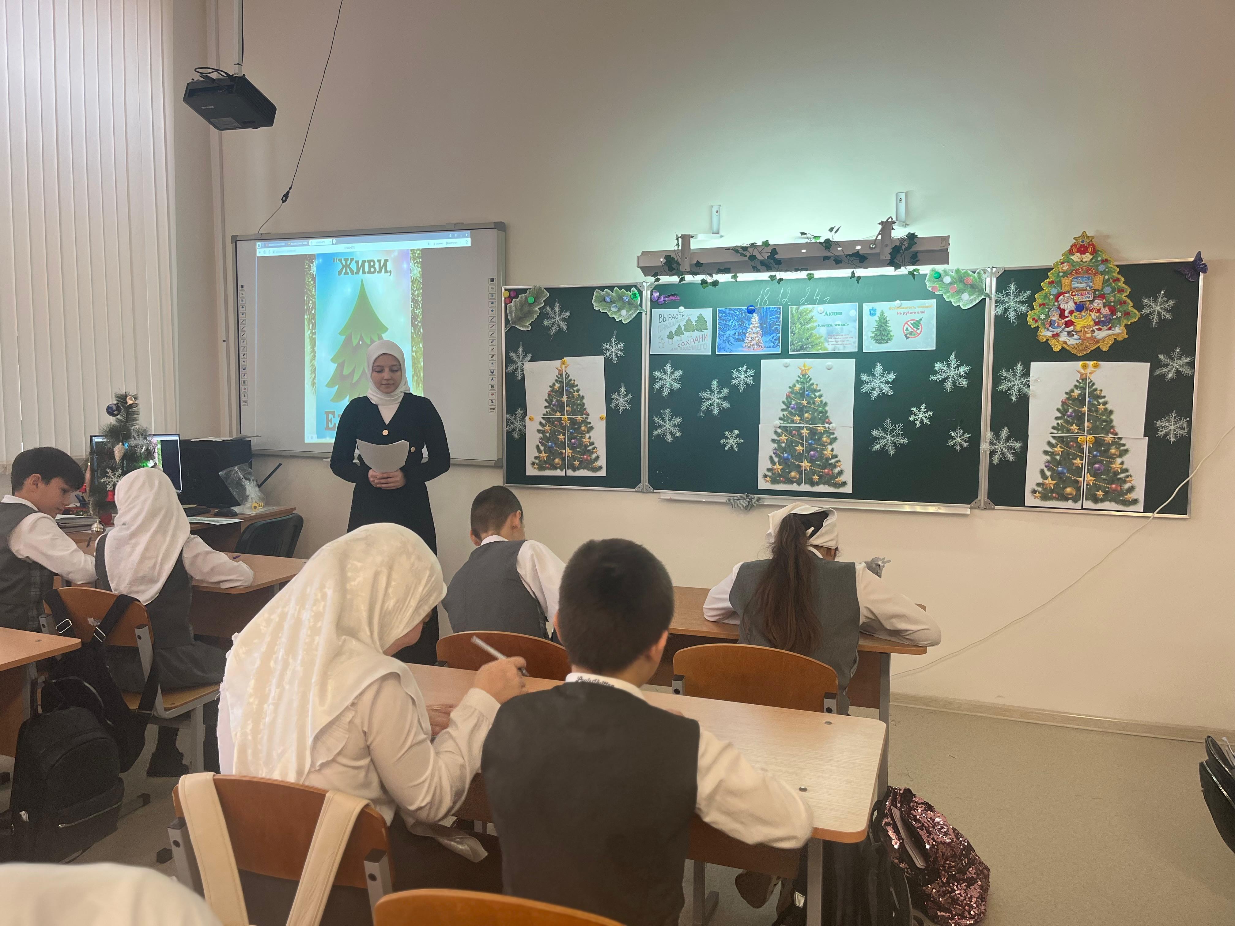 В рамках метапредметной недели в МБОУ СОШ с.Беркат-Юрт проведена экологическая акция «Живи ёлочка!» (5-9 классы)