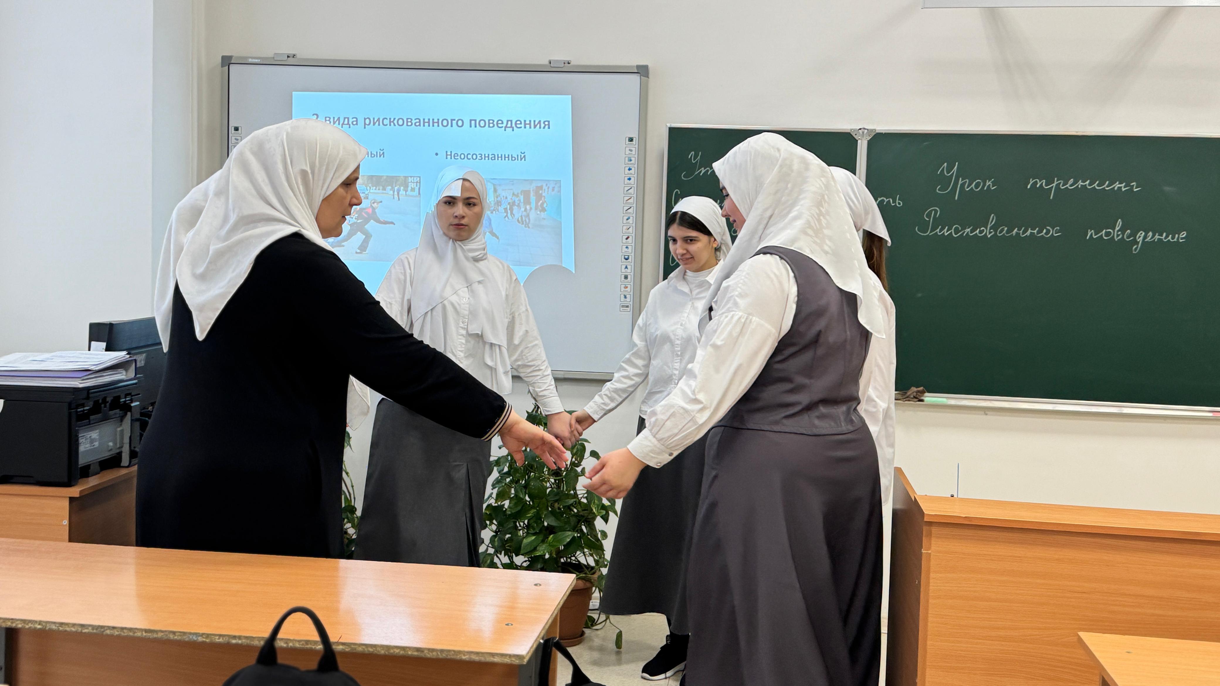 В рамках внедрения памяток ("навигатор профилактики") в МБОУ "СОШ с. Беркат-Юрт" среди обучающихся 9-11х кл. педагогом-психологом Дудаевой М. Д. и социальным педагогом Джамалуевой А.У. был проведен тренинг на тему: "Рискованное поведение и формирование ответственного безопасного поведения ".