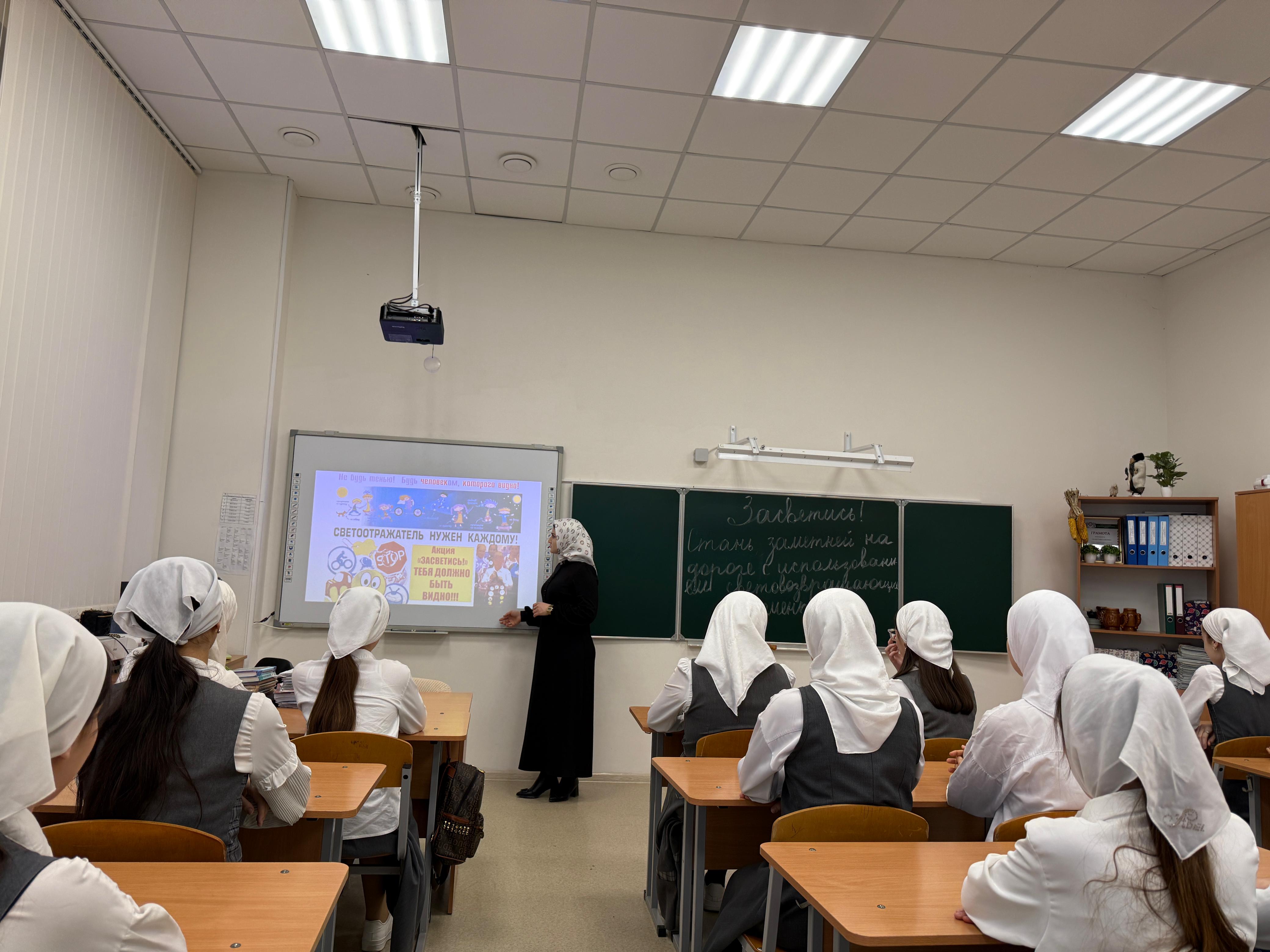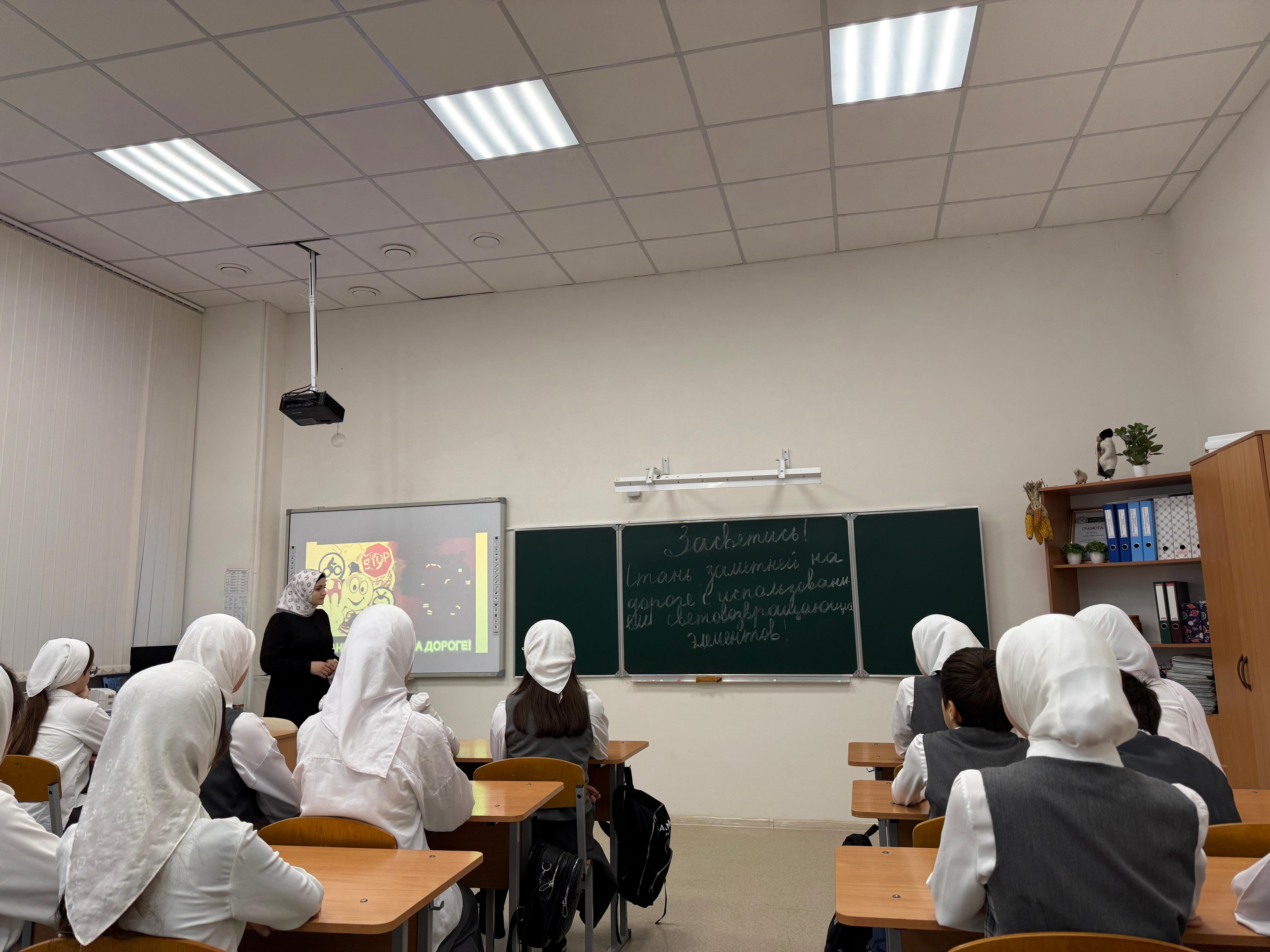 14 февраля 2025 года классный руководитель Убаева Р.Х провела в 8г классе классный час на тему: «Засветись!» Заметней на дороге» В ходе классного часа классный руководитель напомнила детям основные правила дорожного движения.