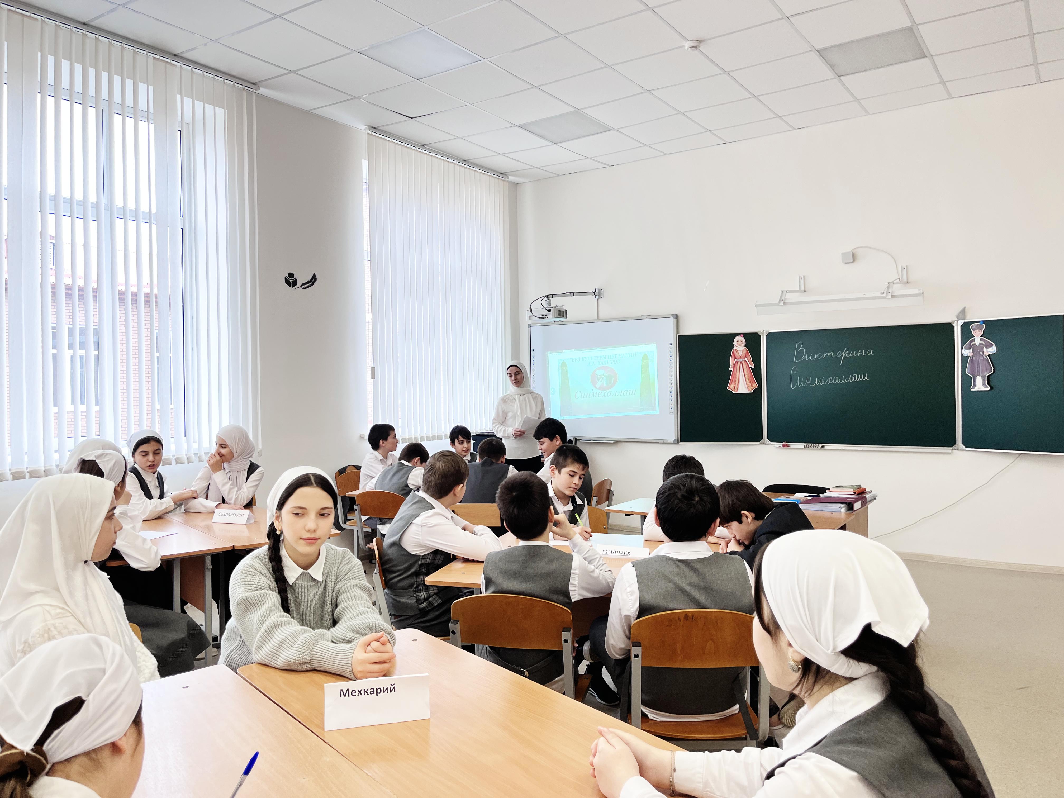 14.02.2025В рамках реализации Единой Концепции духовно-нравственного воспитания и развития подрастающего поколения с обучающимися 5-9 классов с целью популяризации традиционных духовных ценностей народов Чеченской Республики проведены мероприятия. В ходе мероприятия детям рассказали о духовном-нравственном воспитании, этикете, также о духовных ценностях чеченского народа. Проведено 3 мероприятия. В мероприятии приняли участия 77 обучающихся.