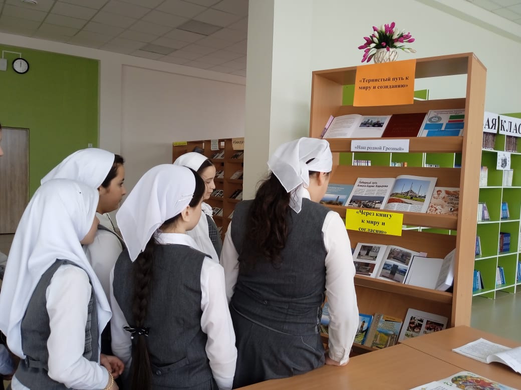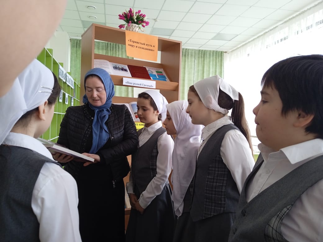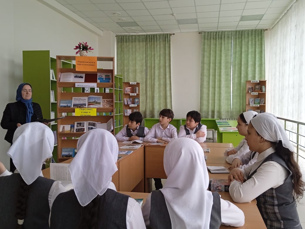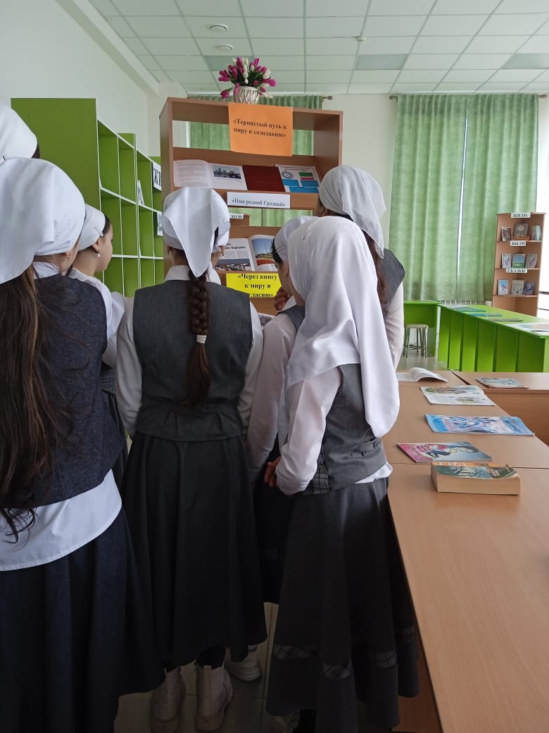 5 декабря в МБОУ «СОШ с.Беркат-Юрт» проведена книжная выставка «Тернистый путь к миру», приуроченная к Году Грозного и имени Владимира Владимировича Путина.