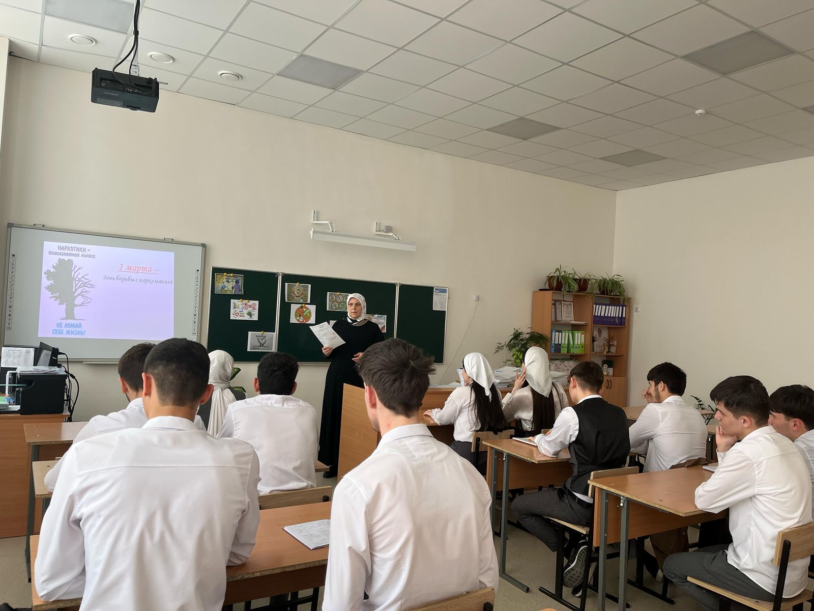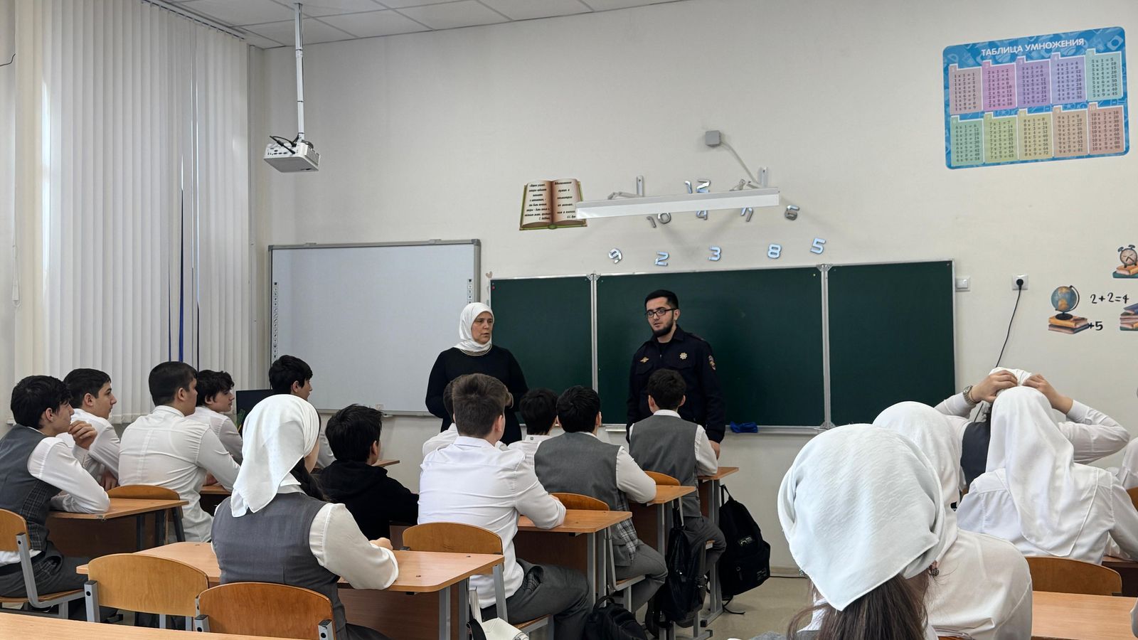 21.03.2025В целях повышения правовой грамотности обучающихся и формирование негативного отношения к незаконному потреблению наркотических средств и психотропных веществ, на пропаганду здорового образа жизни социальным педагогом Джамалуевой А.У. Совместно с инспектором ПДН Замзаджиевым Р.К. 17.03.2025г была проведена беседа на тему: «Психоактивные вещества и их последствия ».