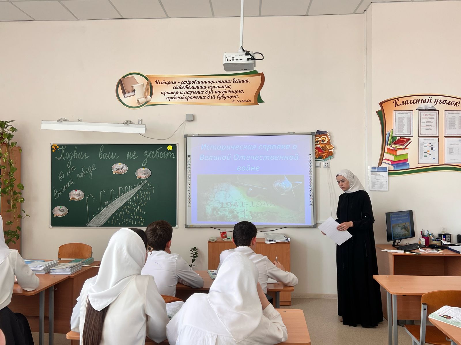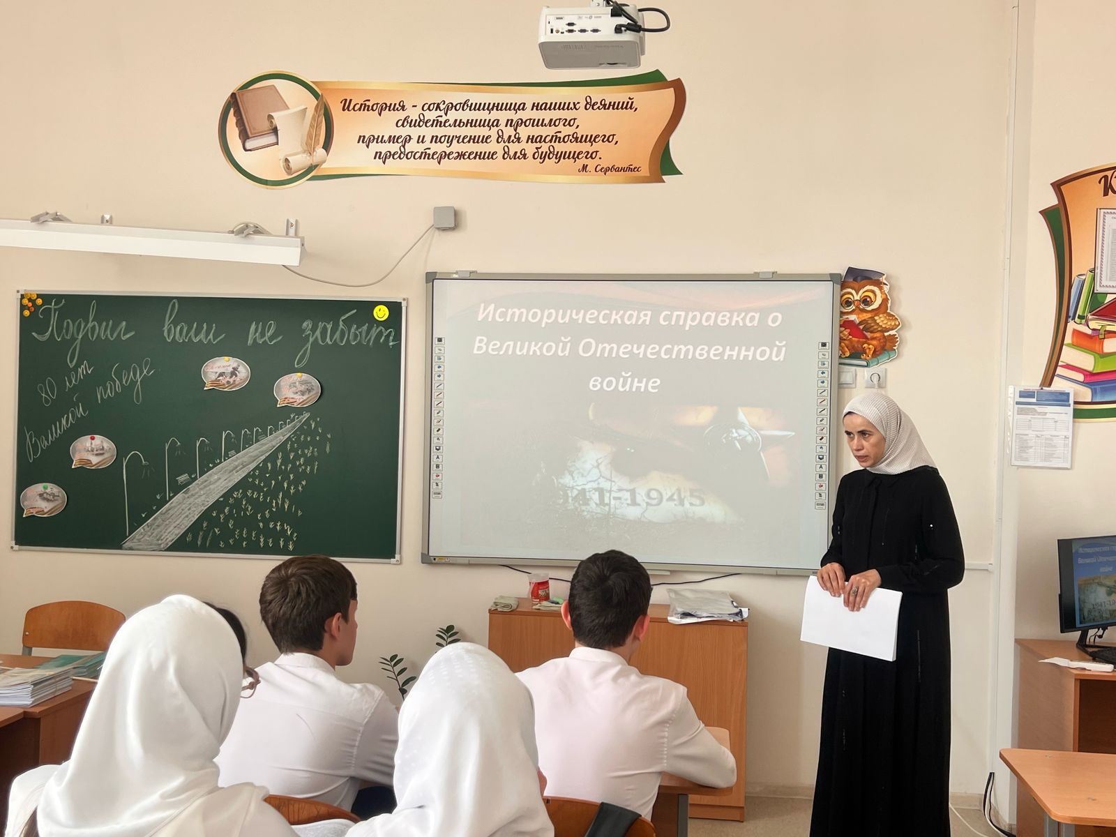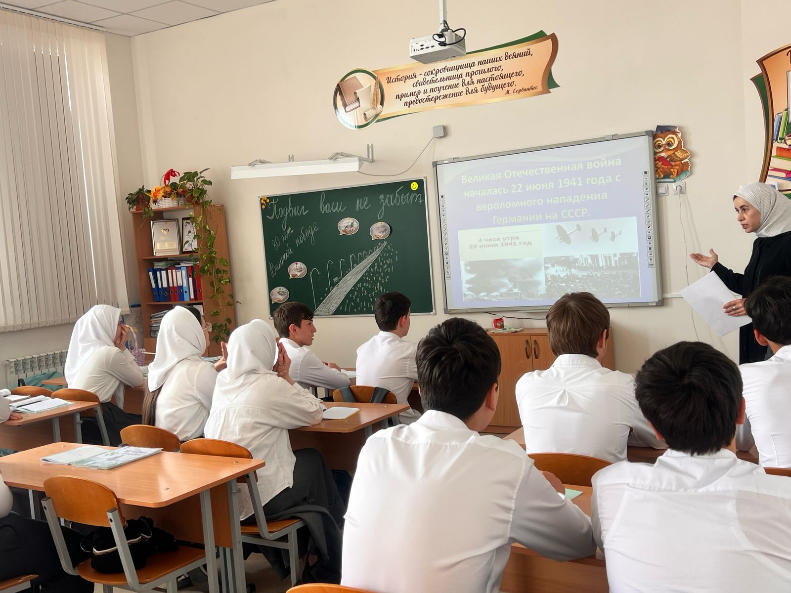 23.04.2025В рамках празднования 80-летия со дня Победы в Великой Отечественной войне в 9 а классе проведен классный час на тему «Подвиг ваш не забыт». Ребята познакомились с историческими событиями великой победы, узнали ранее неизвестные факты сражения, увидели примеры мужества и героизма, проявленные солдатами в Великой Отечественной войне.