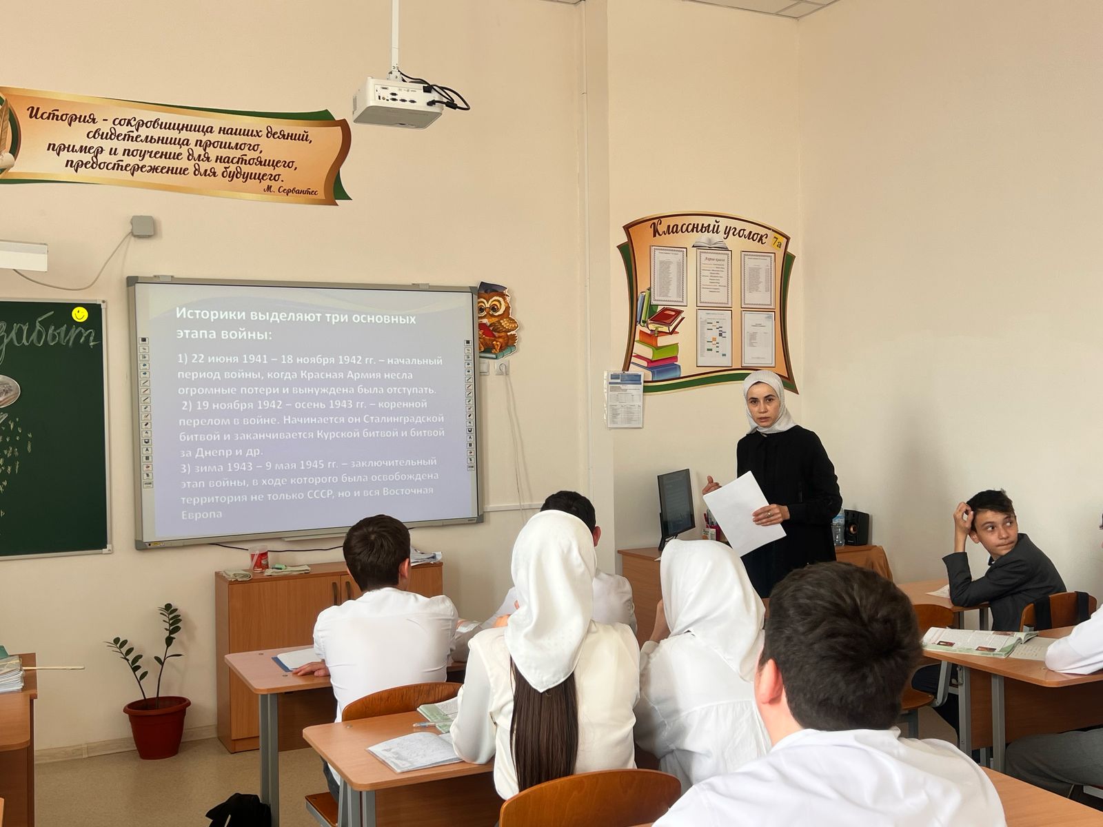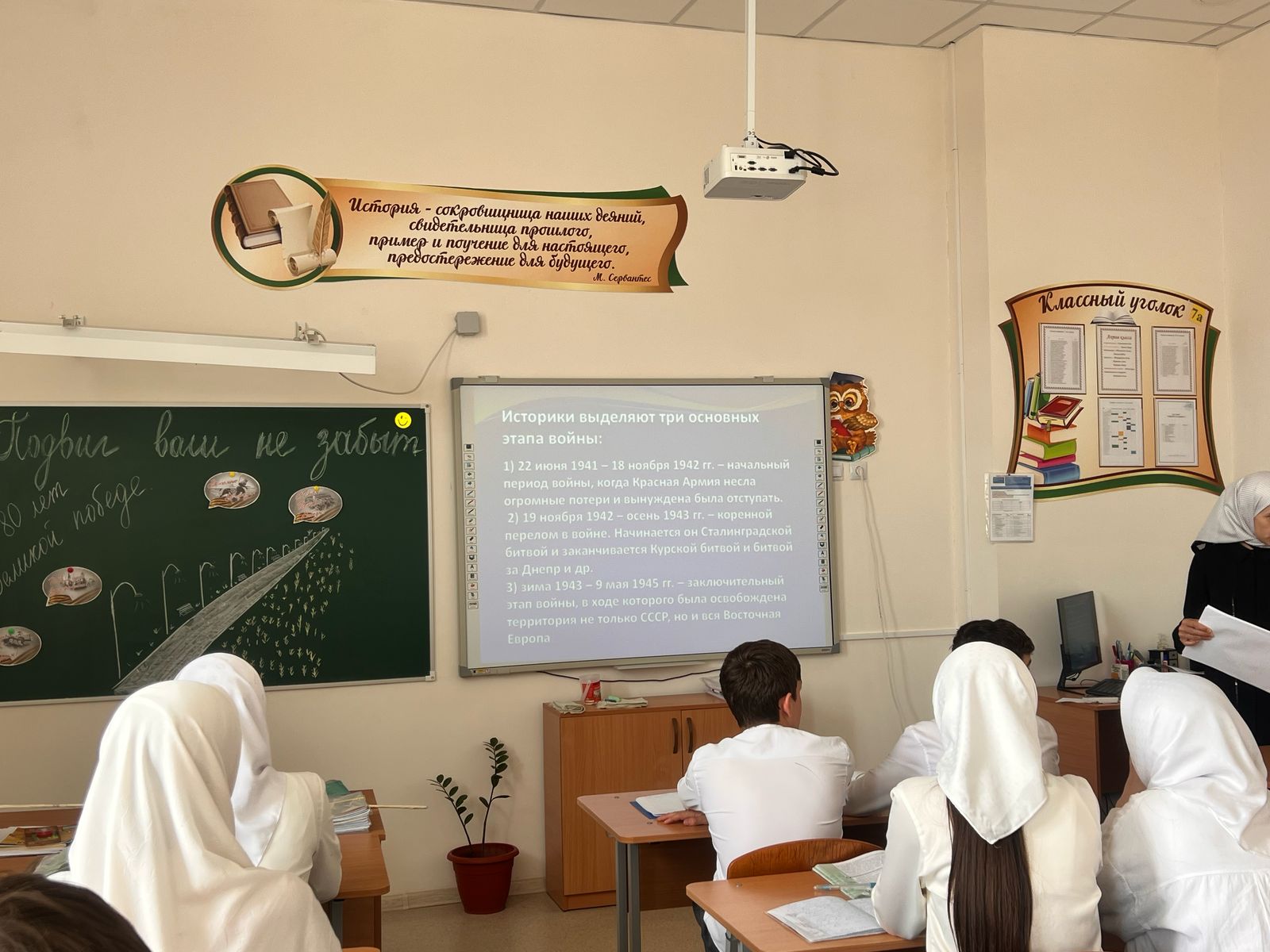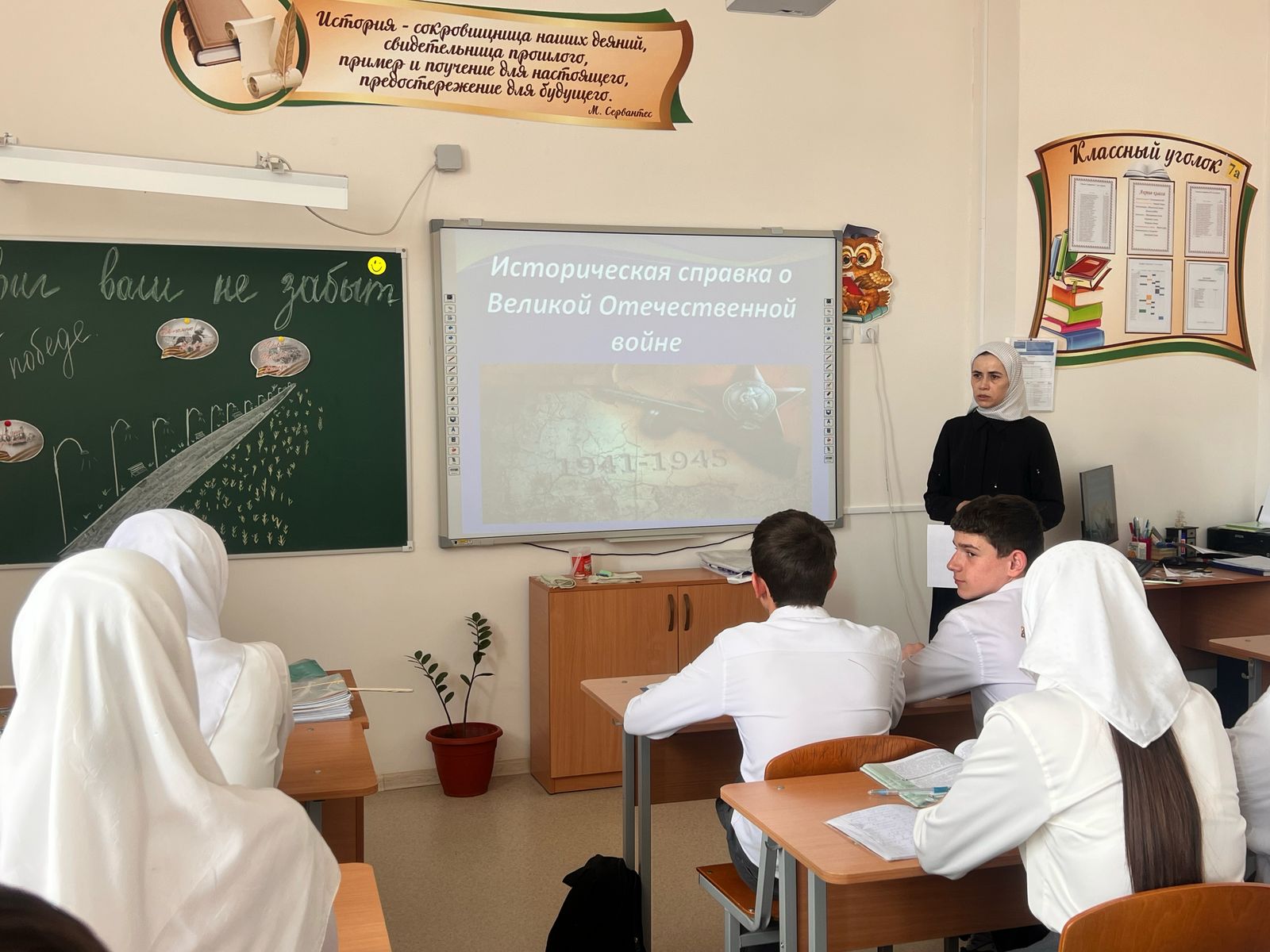 23.04.2025В рамках празднования 80-летия со дня Победы в Великой Отечественной войне в 9 а классе проведен классный час на тему «Подвиг ваш не забыт». Ребята познакомились с историческими событиями великой победы, узнали ранее неизвестные факты сражения, увидели примеры мужества и героизма, проявленные солдатами в Великой Отечественной войне.