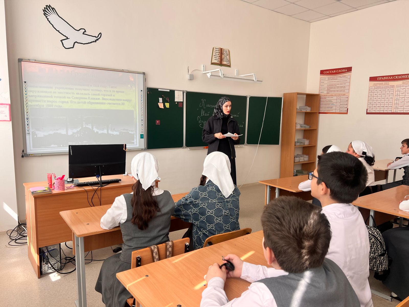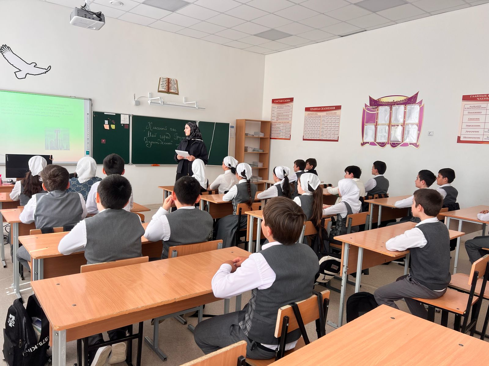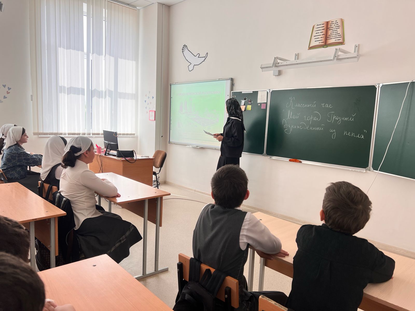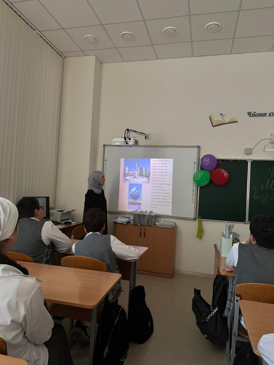 22 апреля в МБОУ «СОШ с.Беркат-Юрт» проведен классный час «Мой город-Грозный, возрожденный из пепла», приуроченный к Году Грозного и имени Владимира Владимировича Путина обучающимися 7-8 классов.