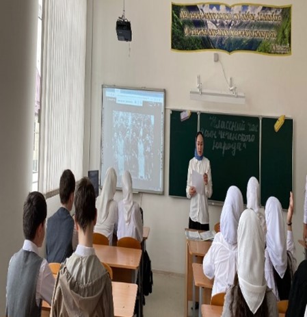 в МБОУ "СОШ с.Беркат-Юрт" проведены мероприятия, приуроченные ко Дню памяти и скорби народов Чеченской Республики.