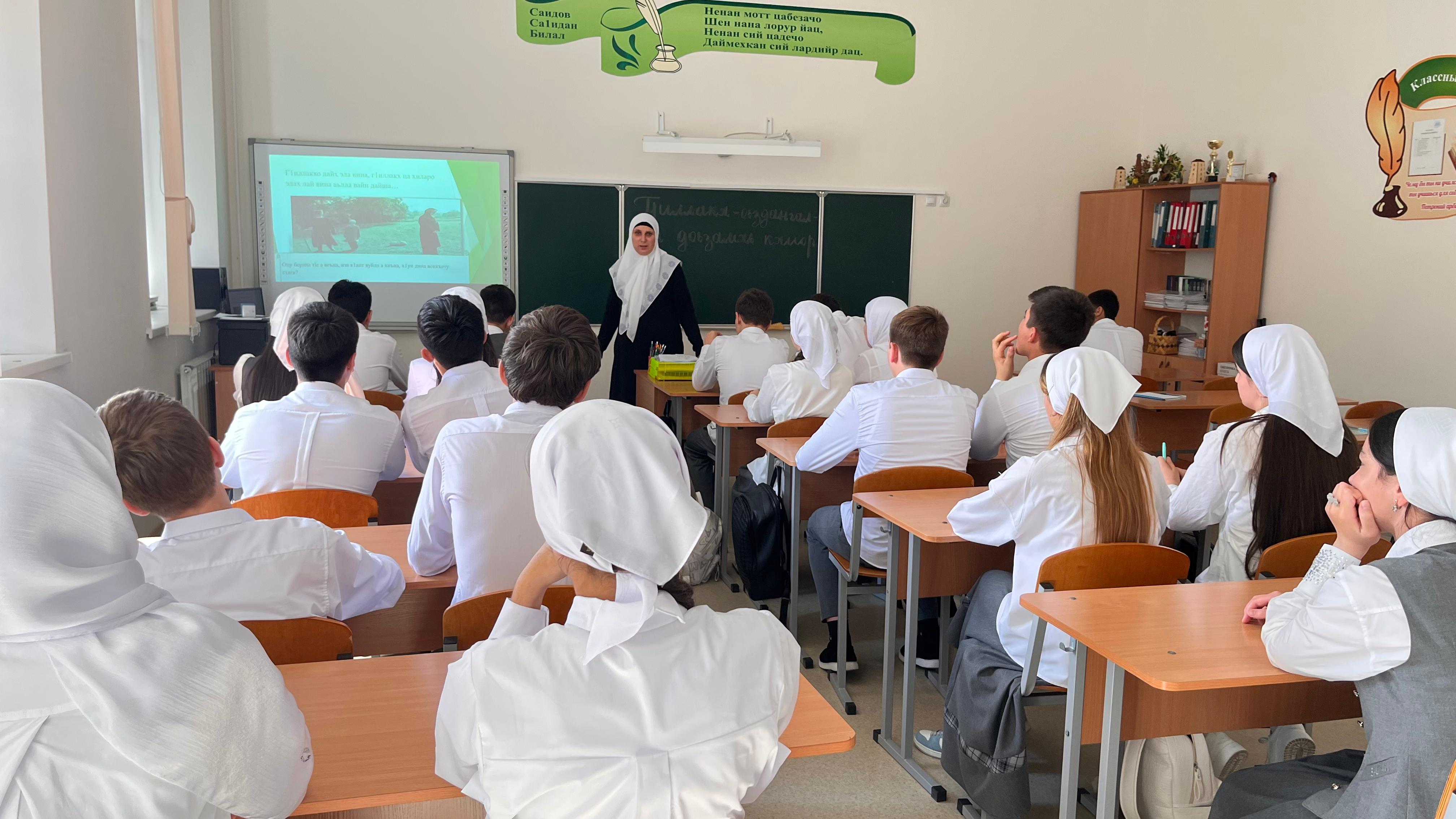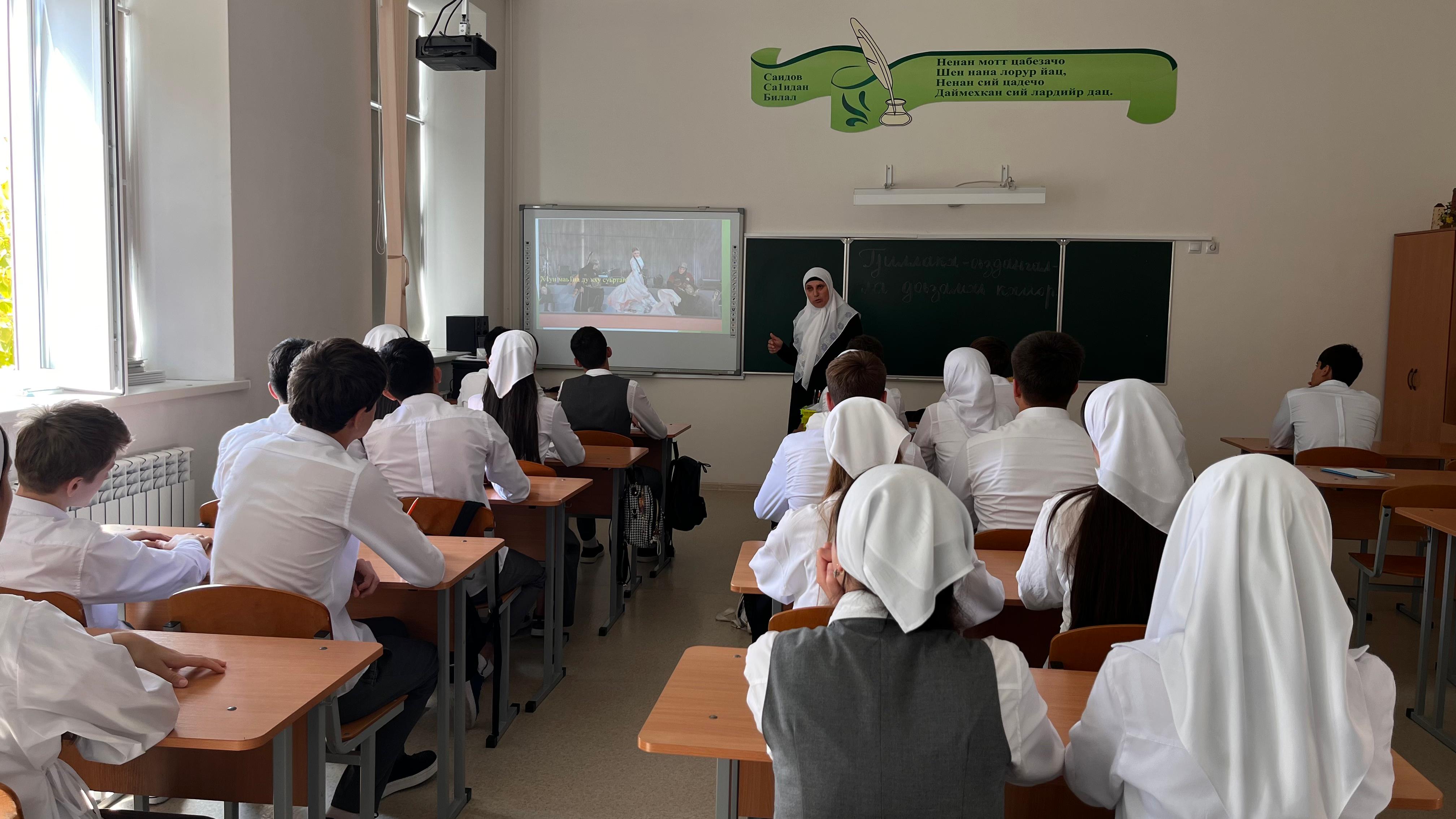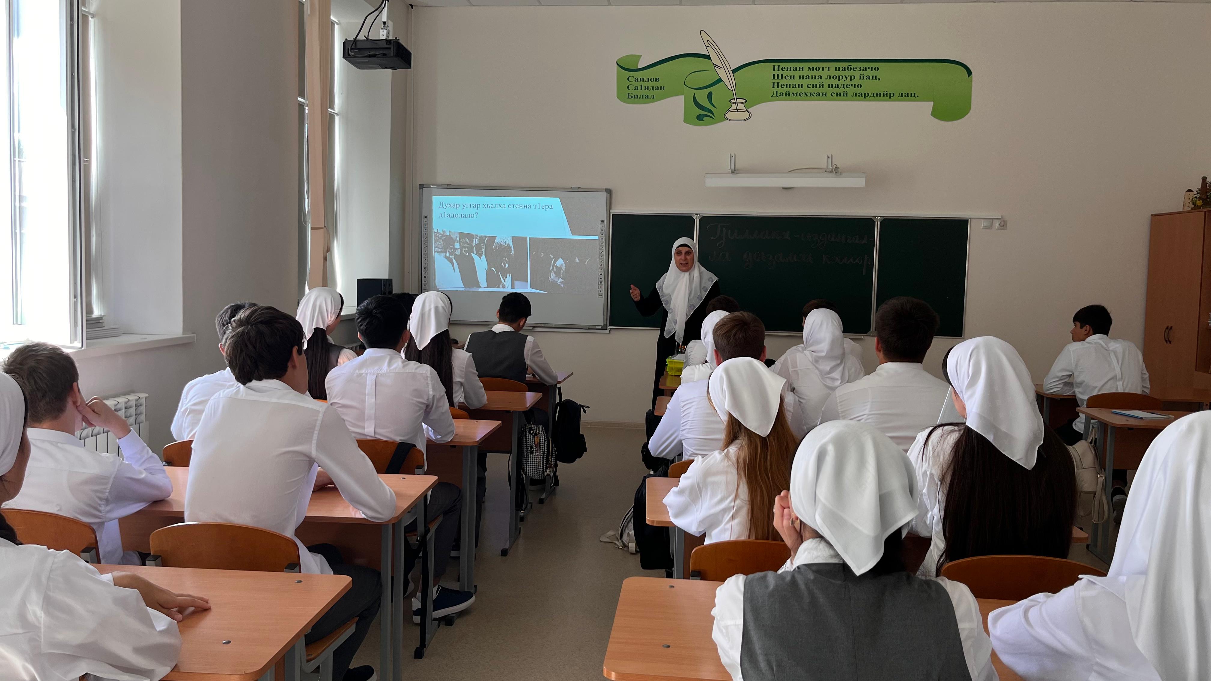 16.09.2025В рамках реализации Единой Концепции духовно-нравственного воспитания и развития подрастающего поколения с целью воспитания у учащихся уважения и любви к своим традициям, обычаям своего народа 16 сентября 2025 года с обучающимися в 9 «а» класса проведена беседа на тему: «Доьзал г1иллакх-оьздангаллийца 1амор».